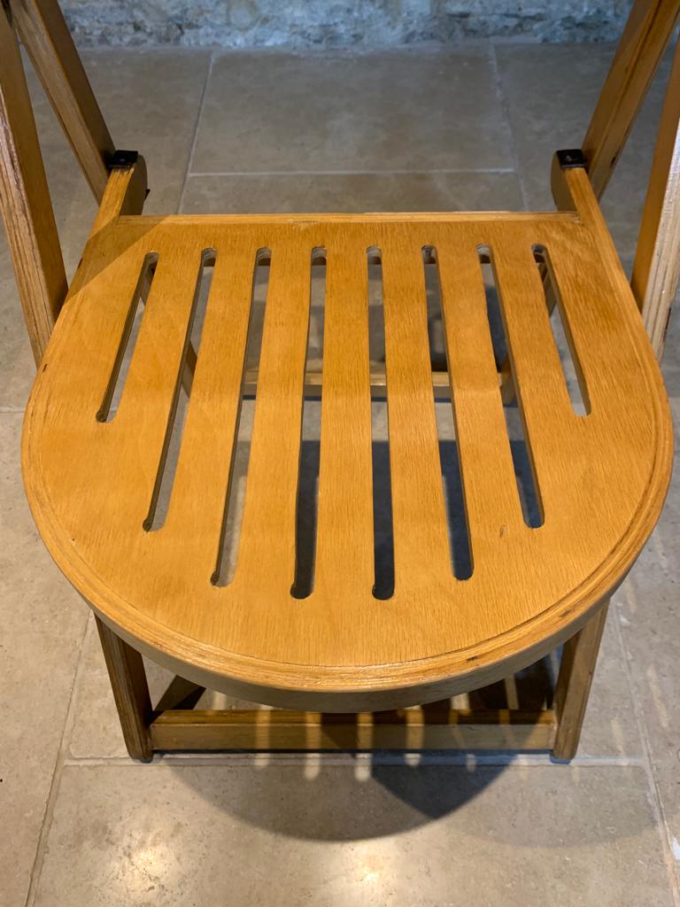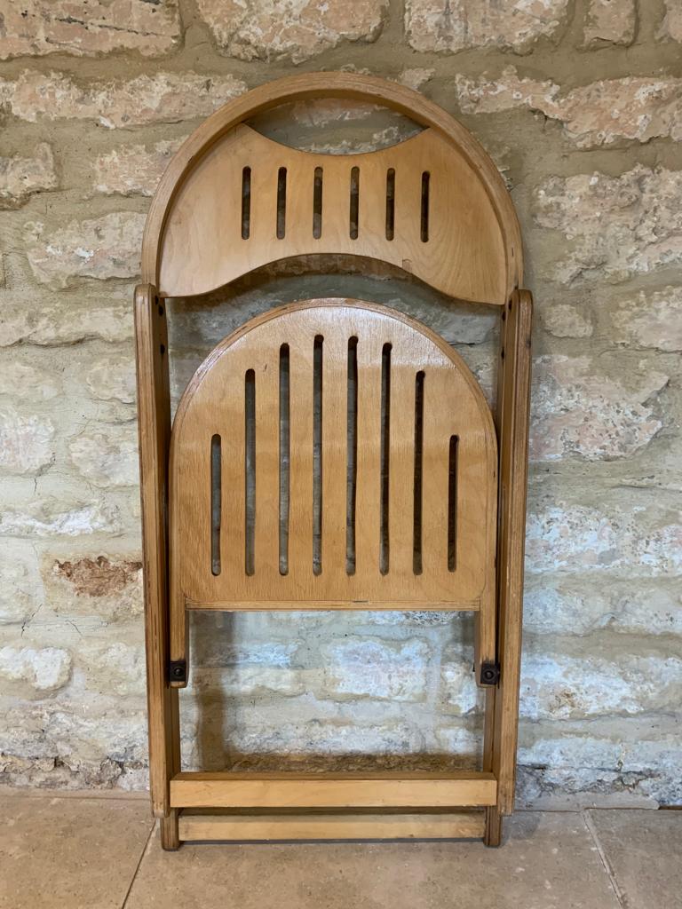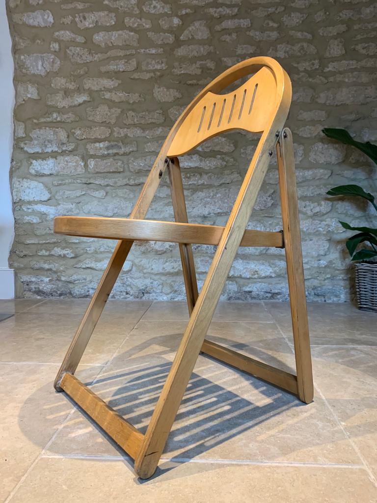 Single wooden folding chair by OTK from the 1950s. With such a stylish shape, vintage charm and the lovely slatted design, we have kept the chair in its in original condition and with its natural patina. It therefore has minor signs of age appropriate wear. Would look great as part of an eclectic mix of dining chairs or as a single occasional chair.