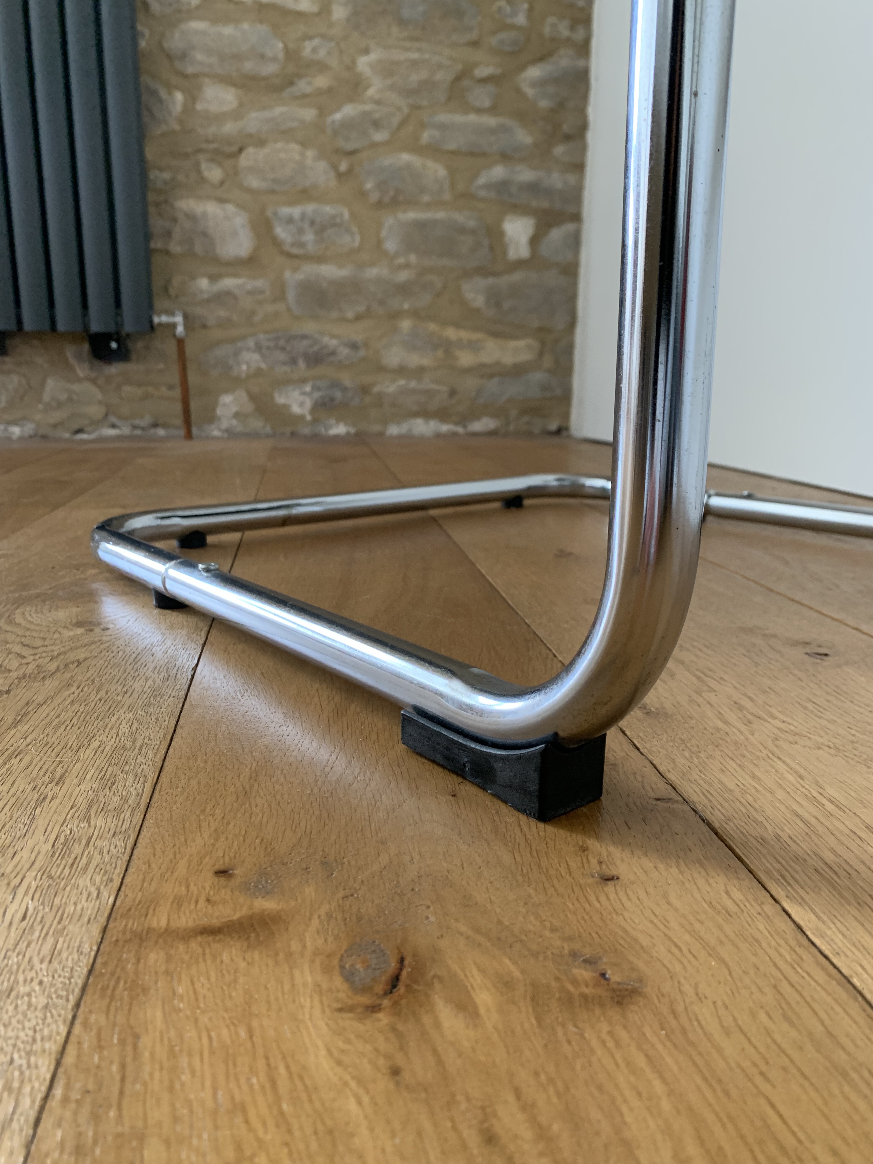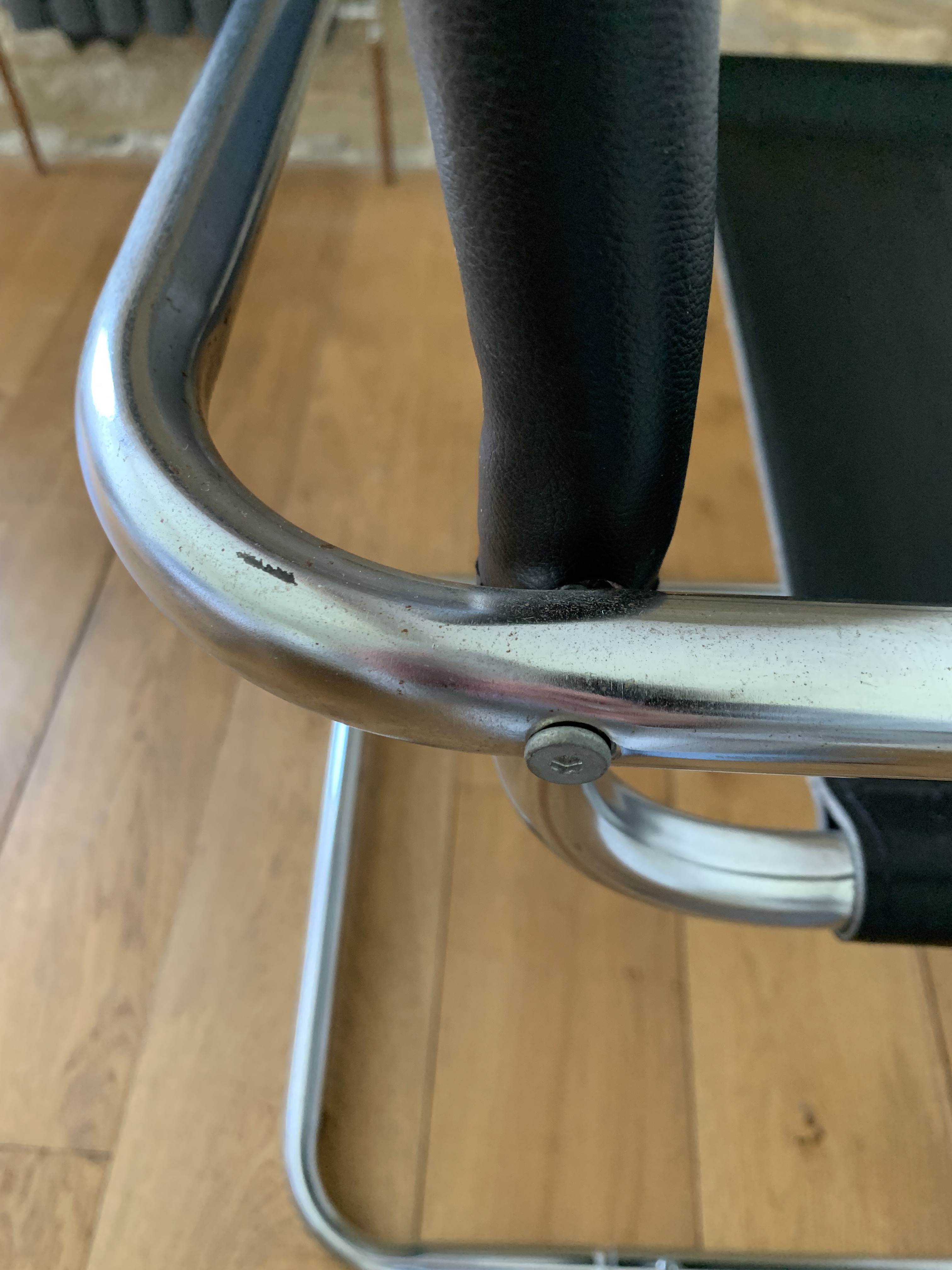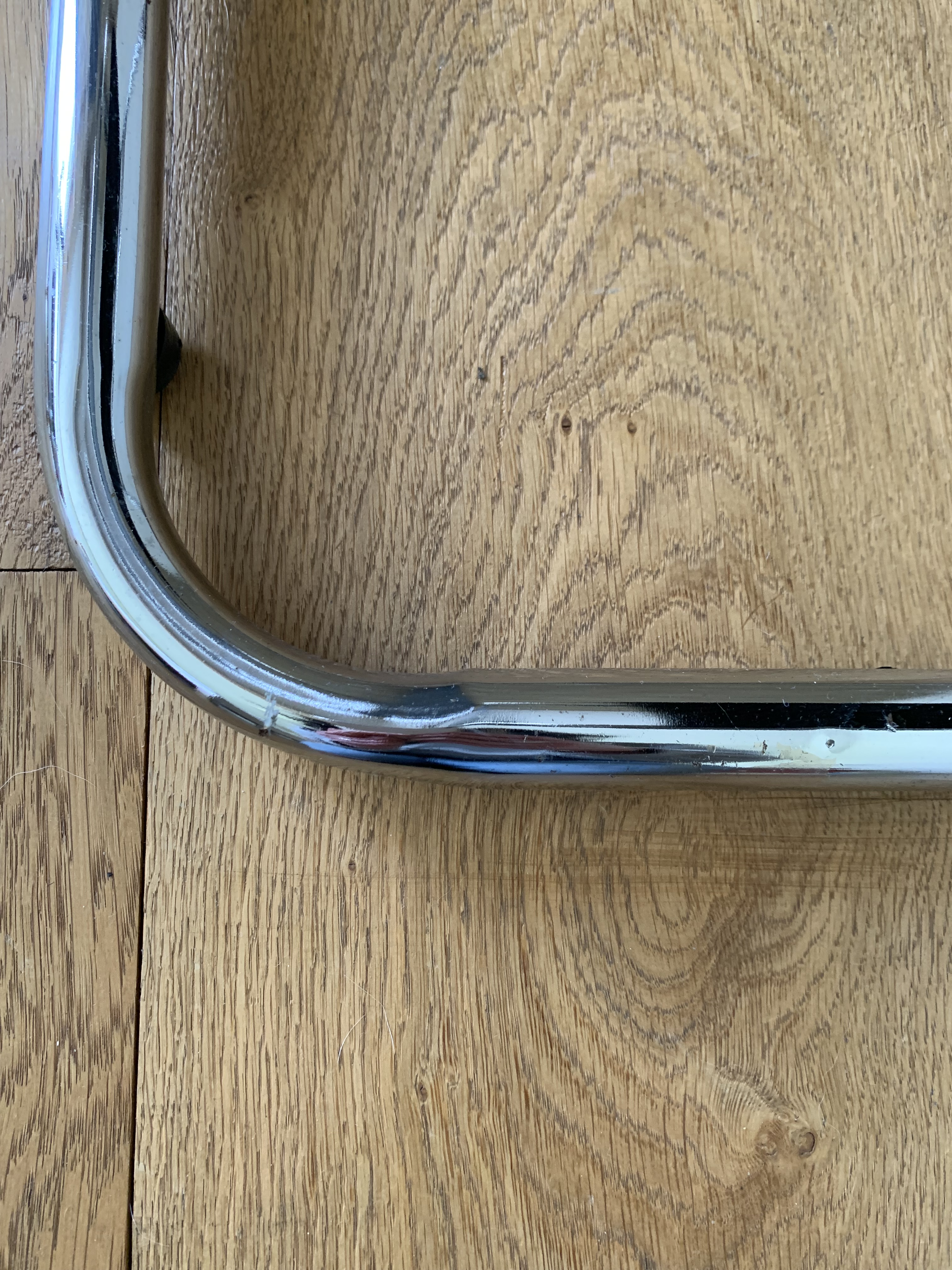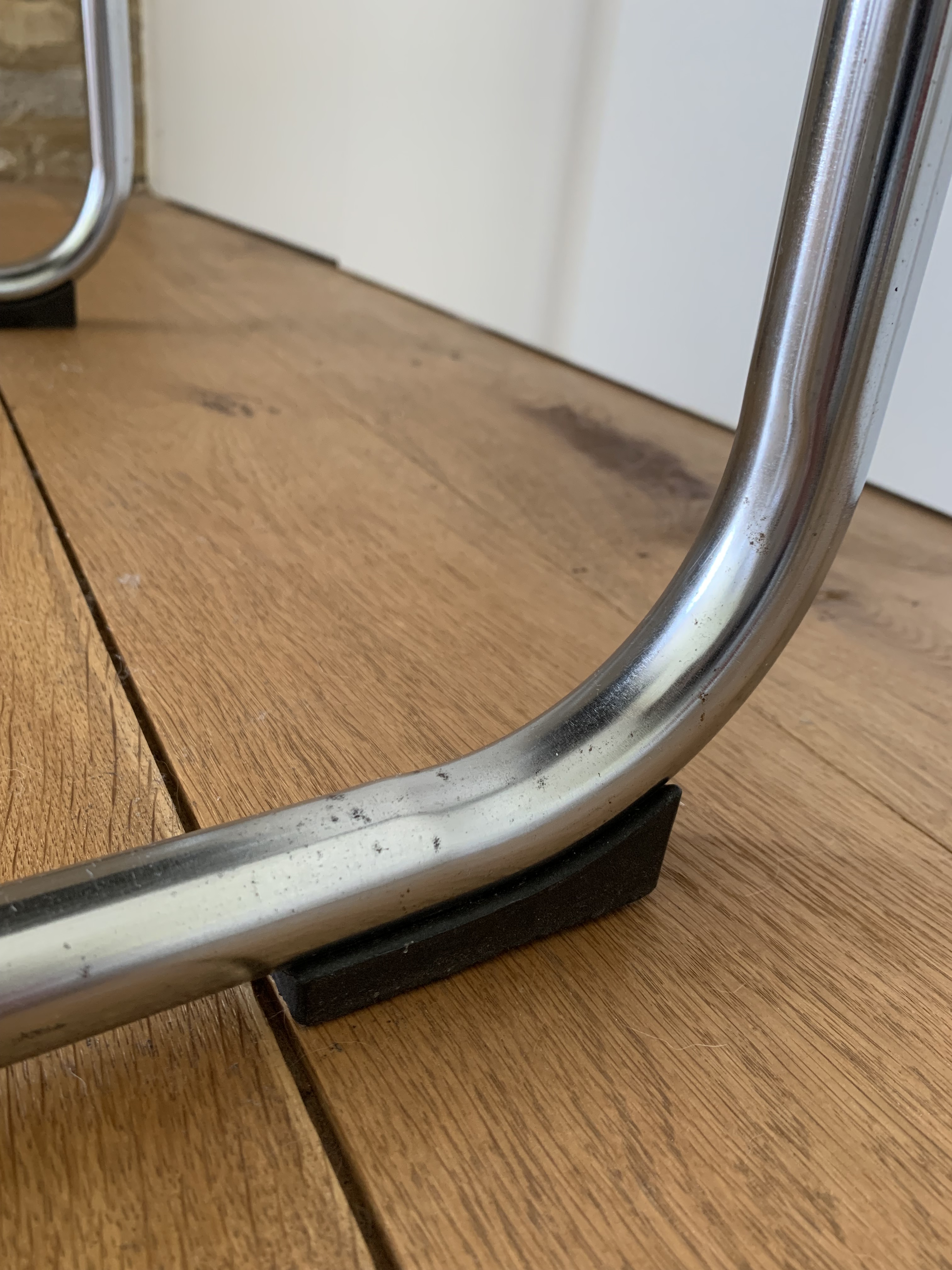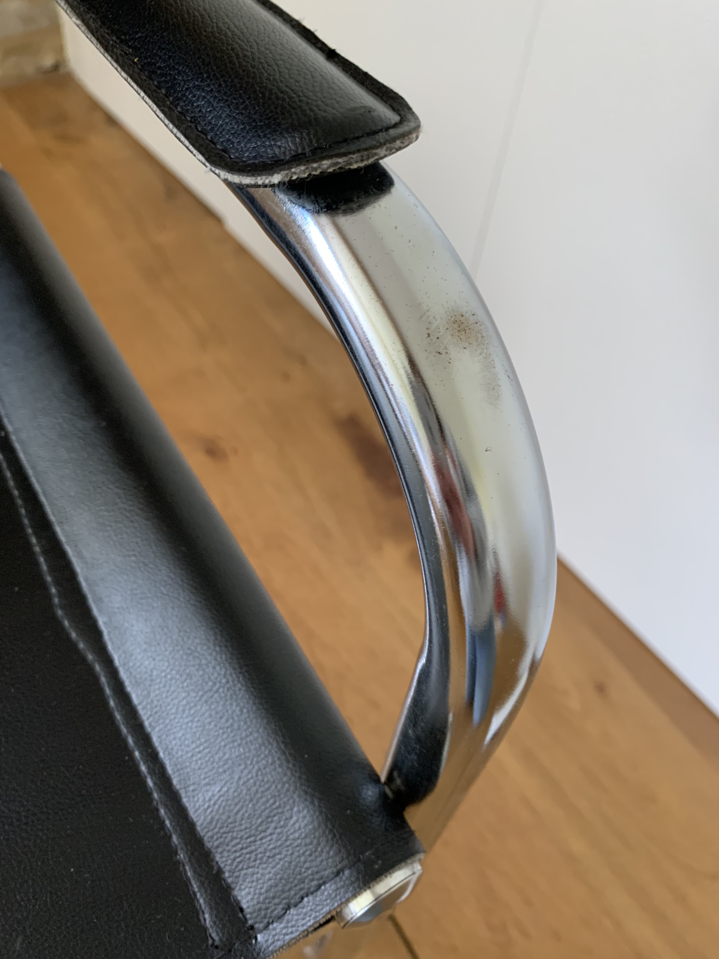 Condition – Both chairs are in superb vintage condition and structurally sound. We have cleaned and polished the chrome frames and the leatherette is in excellent condition with no marks or scratches. There is some very minor discolouration to a few parts of the chrome – see pictures as it really is very minimal. For their age, these chairs have been immaculately looked after.