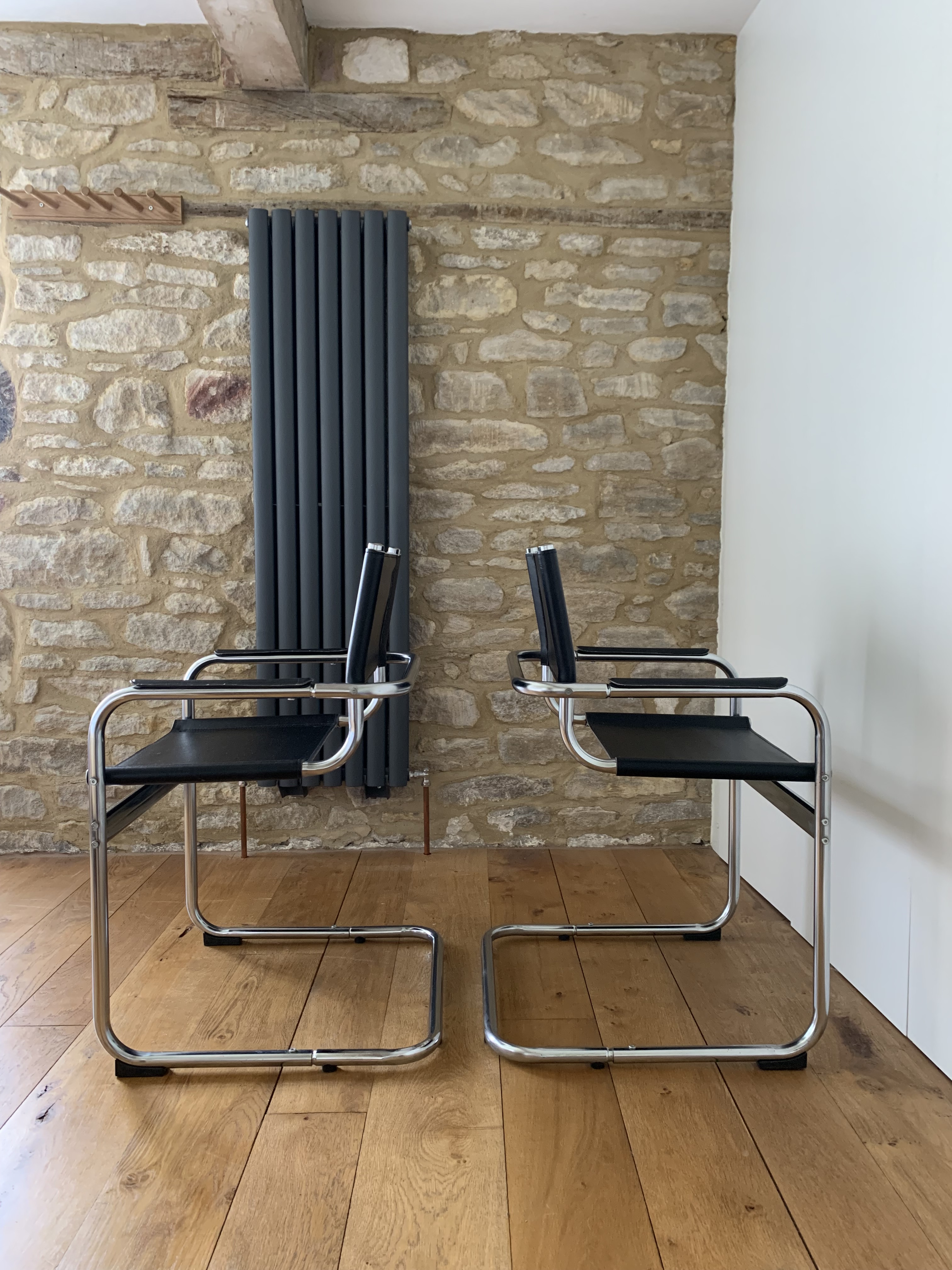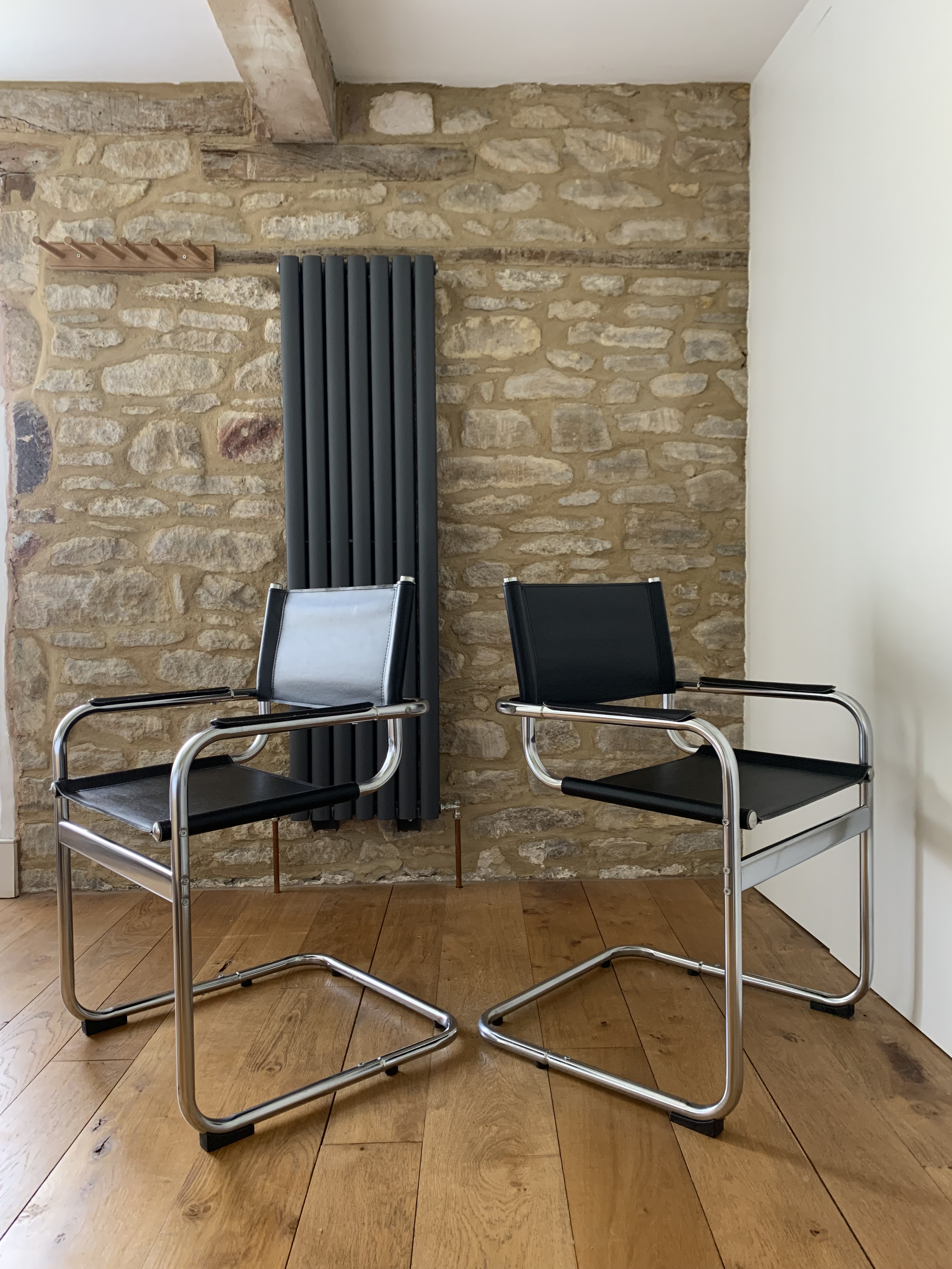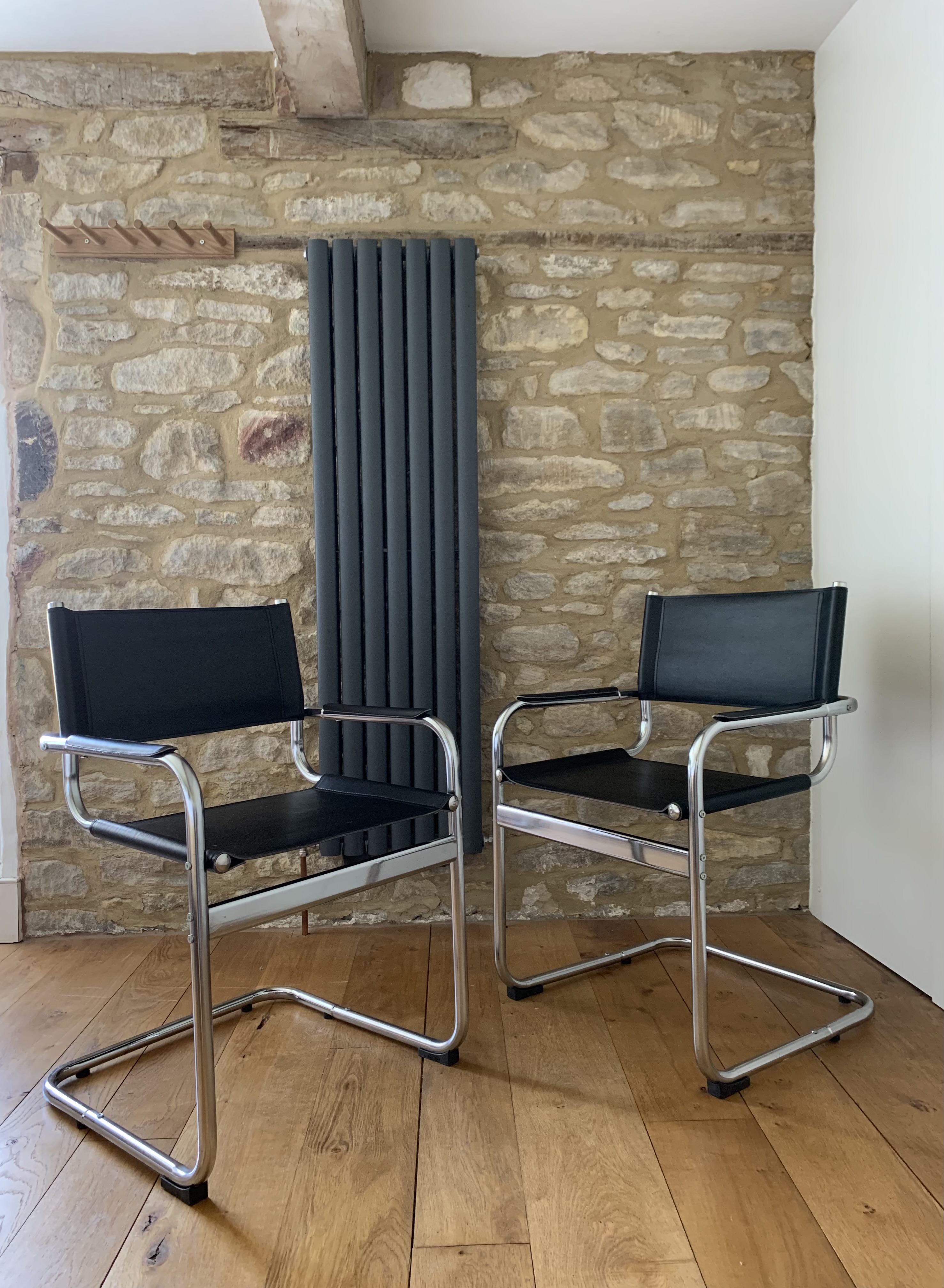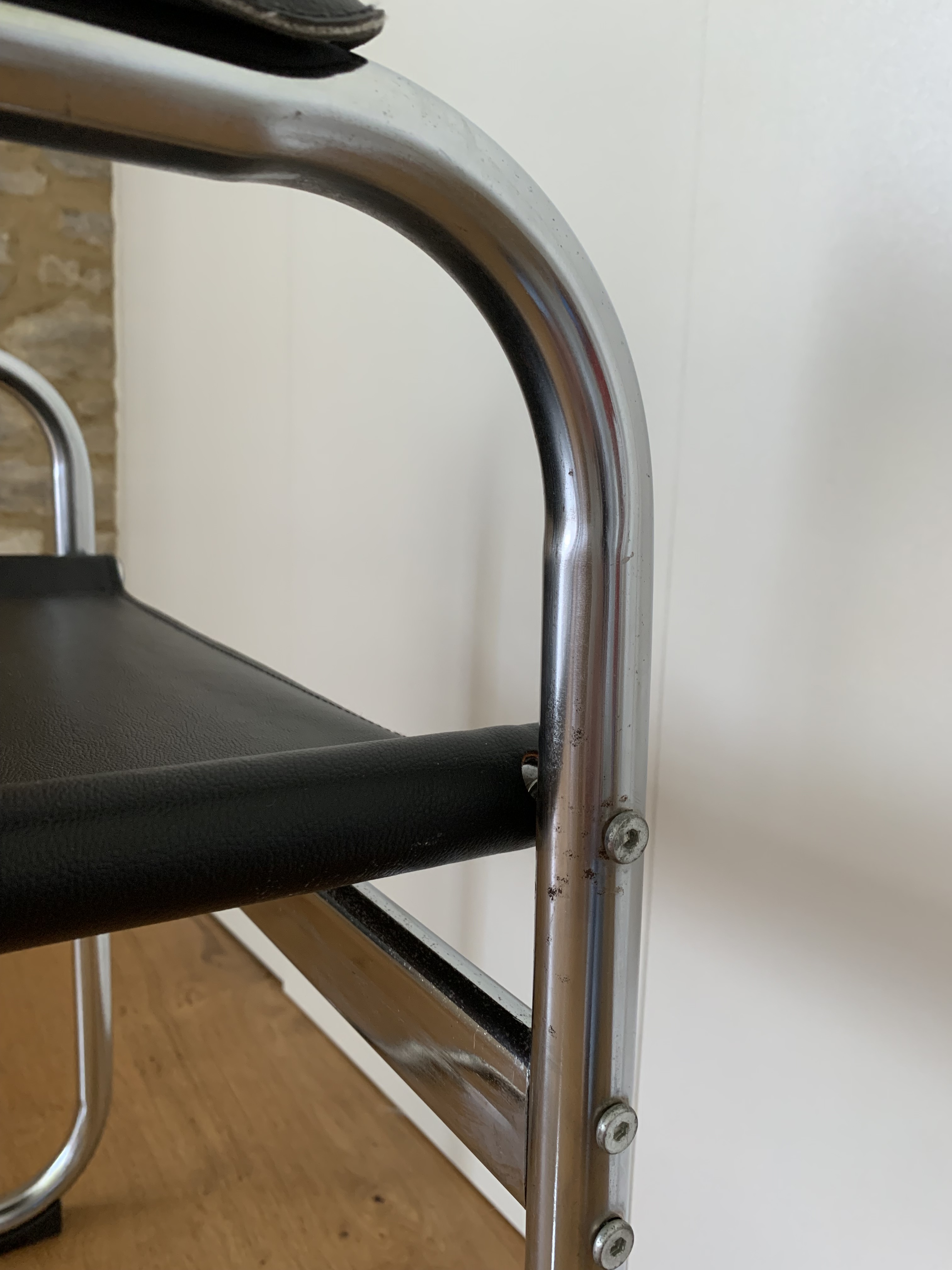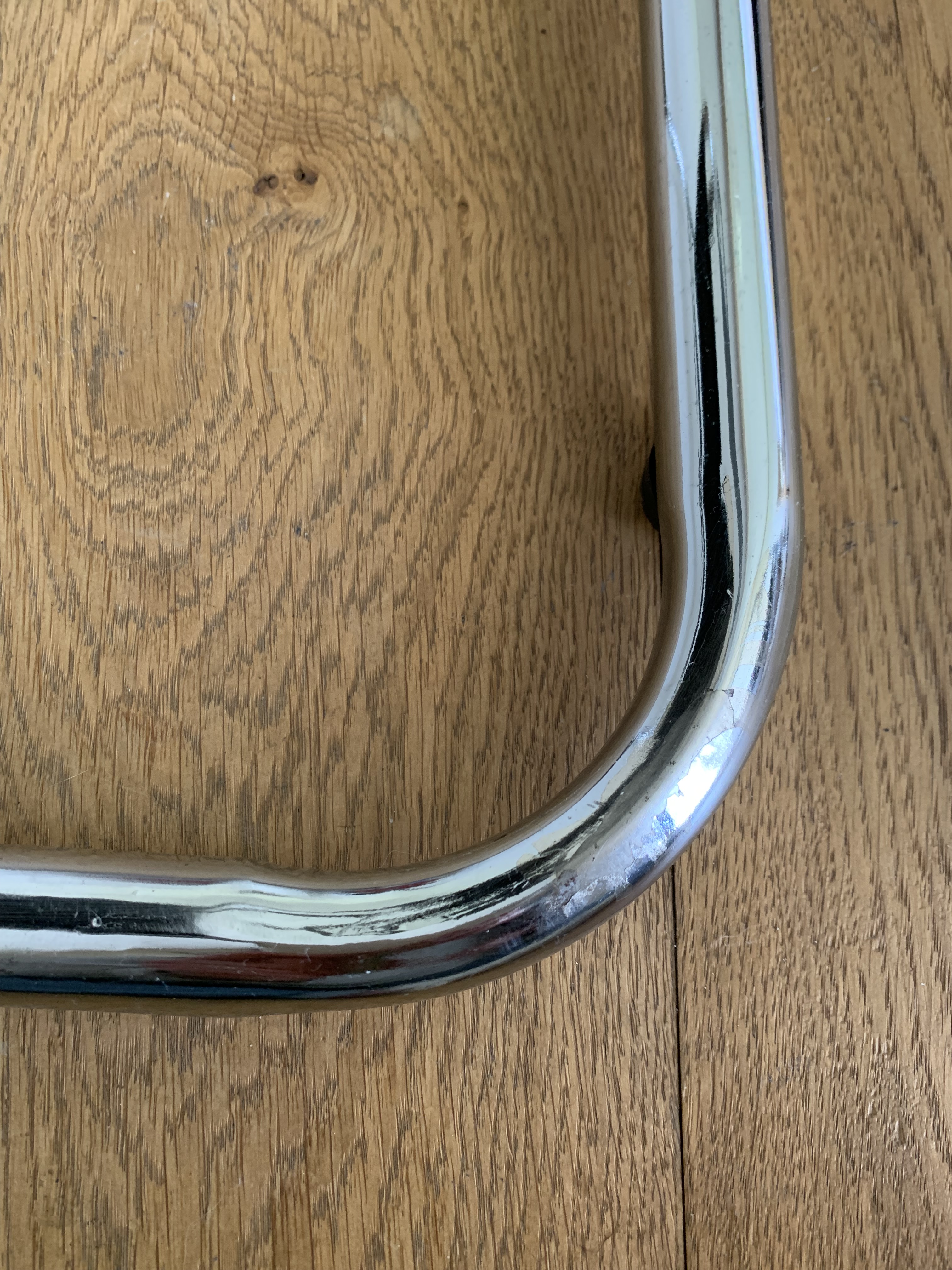 Condition – Both chairs are in superb vintage condition and structurally sound. We have cleaned and polished the chrome frames and the leatherette is in excellent condition with no marks or scratches. There is some very minor discolouration to a few parts of the chrome – see pictures as it really is very minimal. For their age, these chairs have been immaculately looked after.