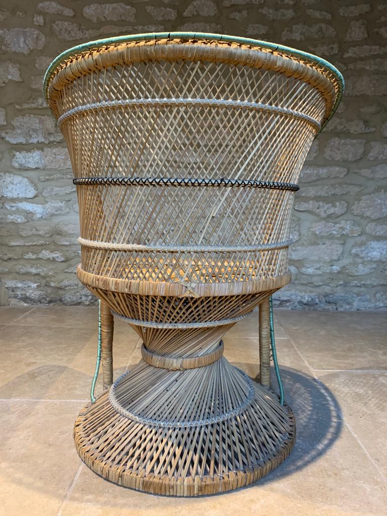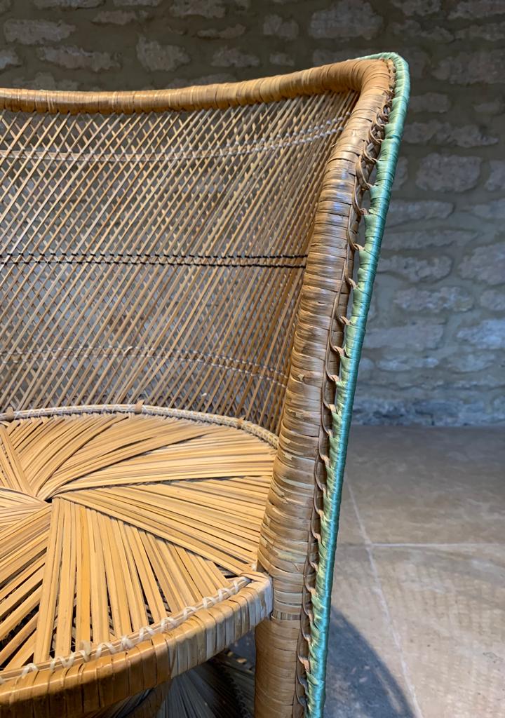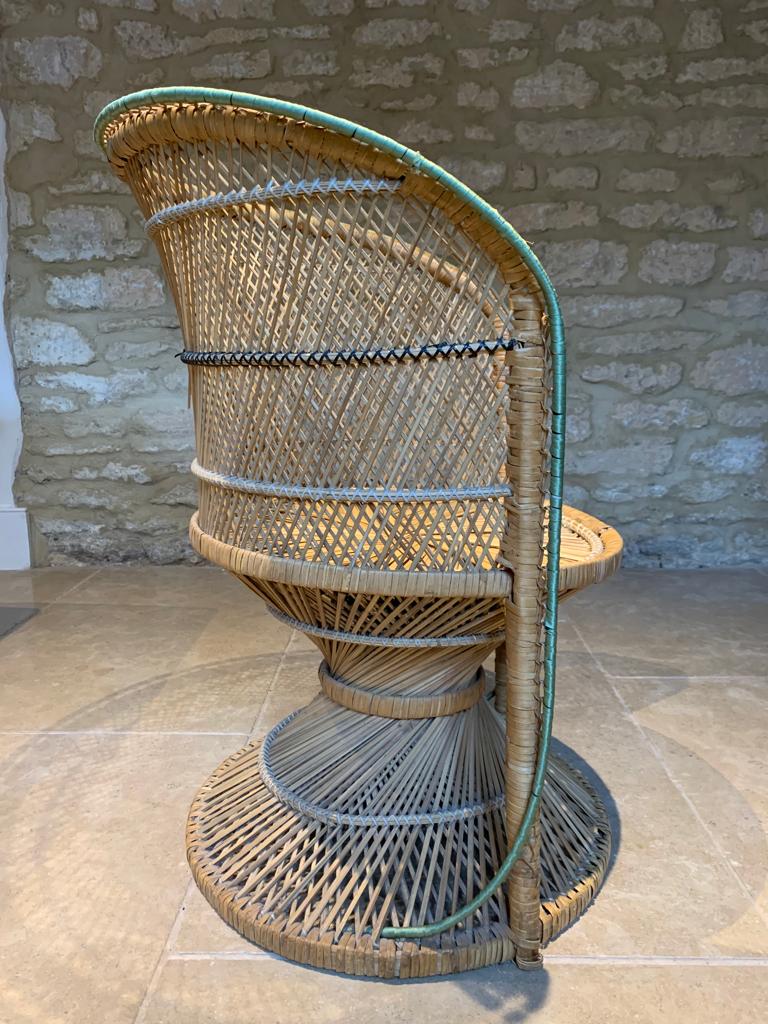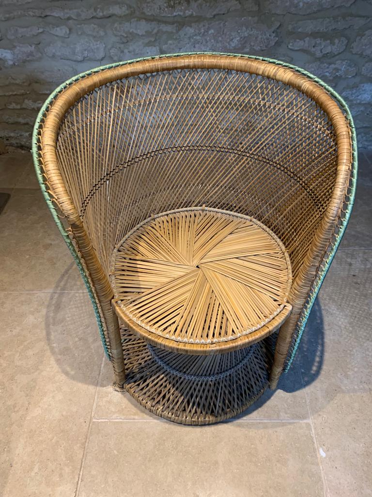 A unique peacock cane chair with green ribbon trim featuring the classic ‘spiralling’ cane base and seat. The chair is in good condition and structurally sound with just a few minor cane imperfections. Would look fantastic in any room of the house, adding a bohemian feel, and is of a good size for an adult or child. SOLD