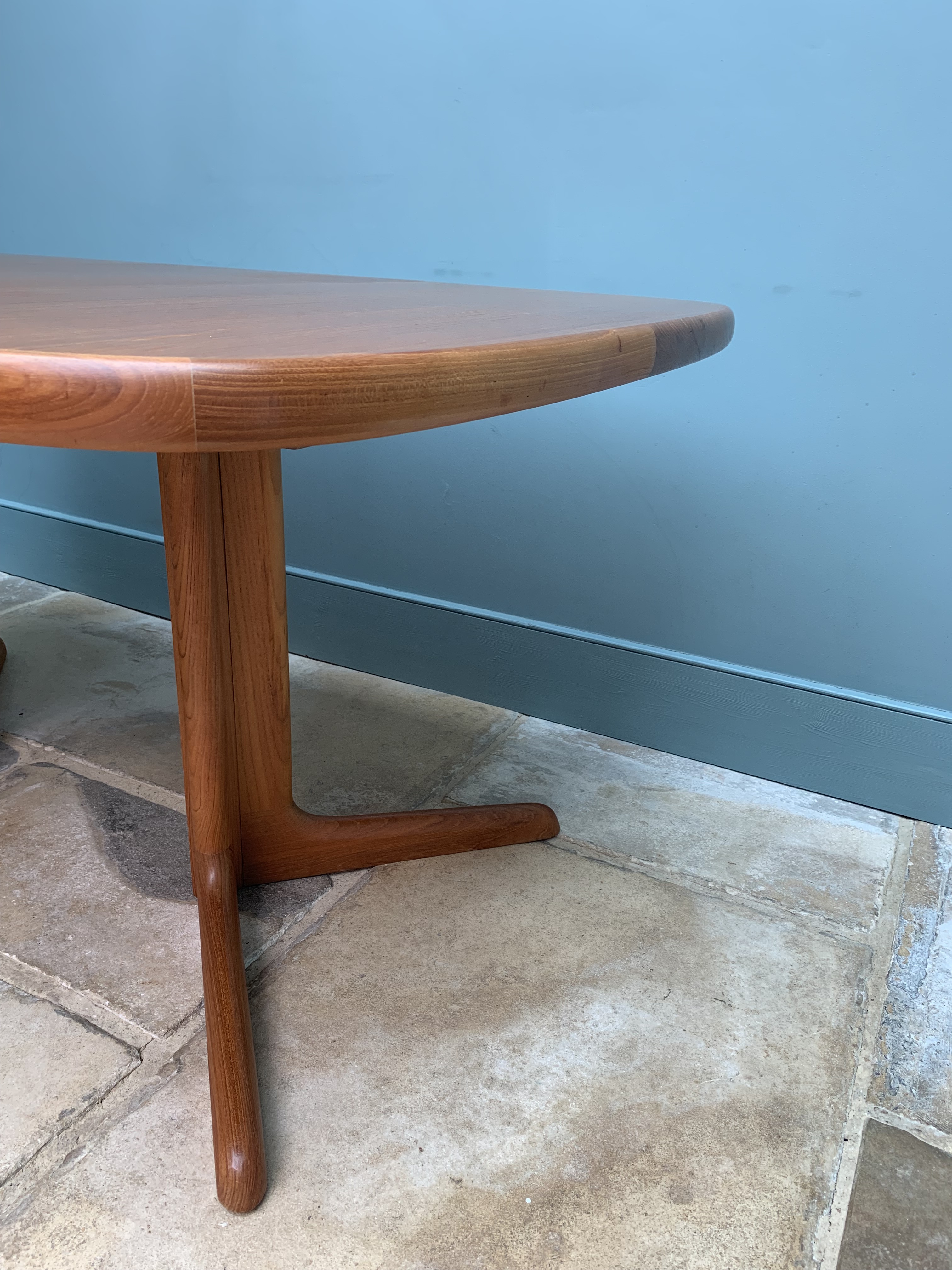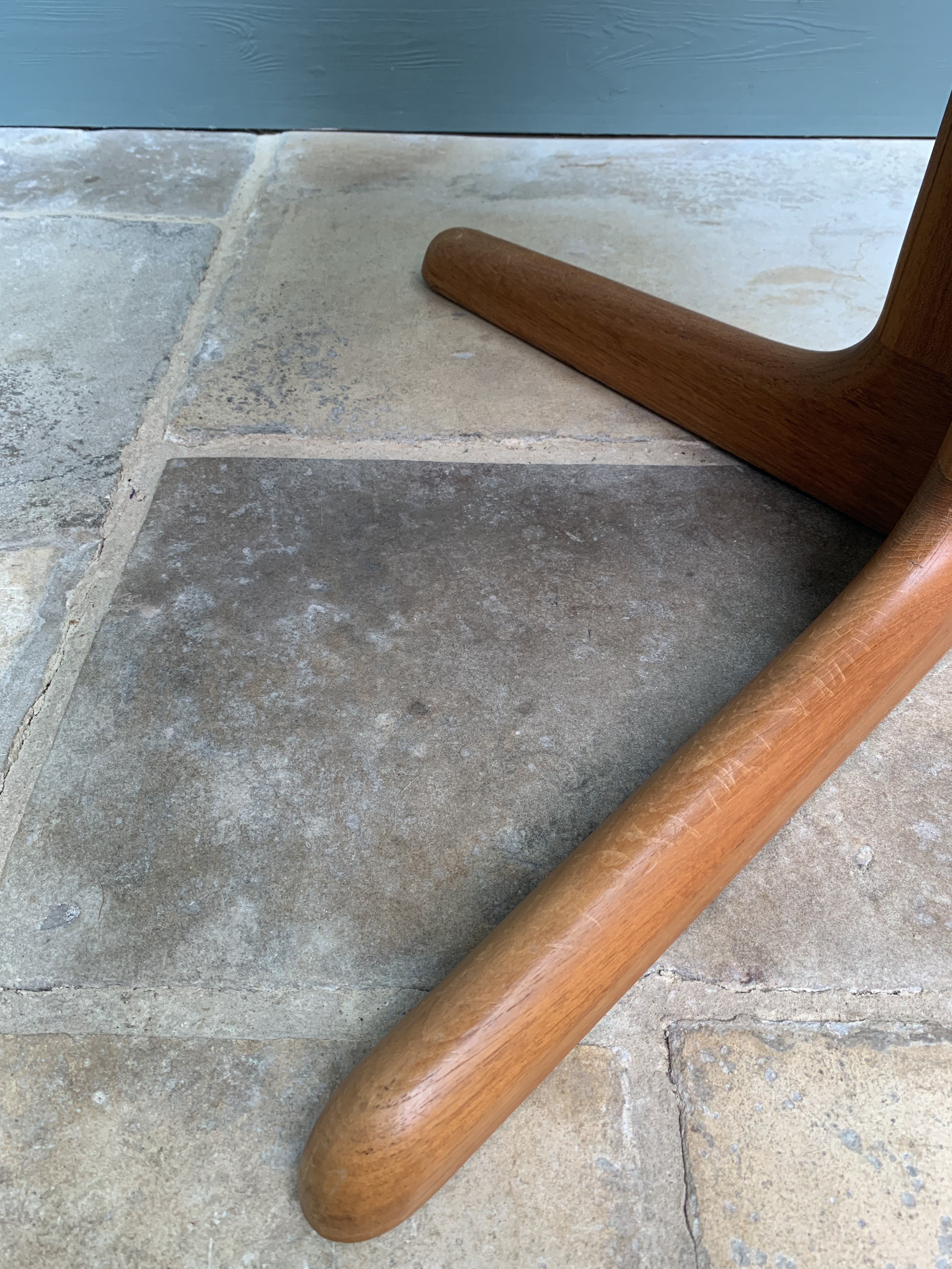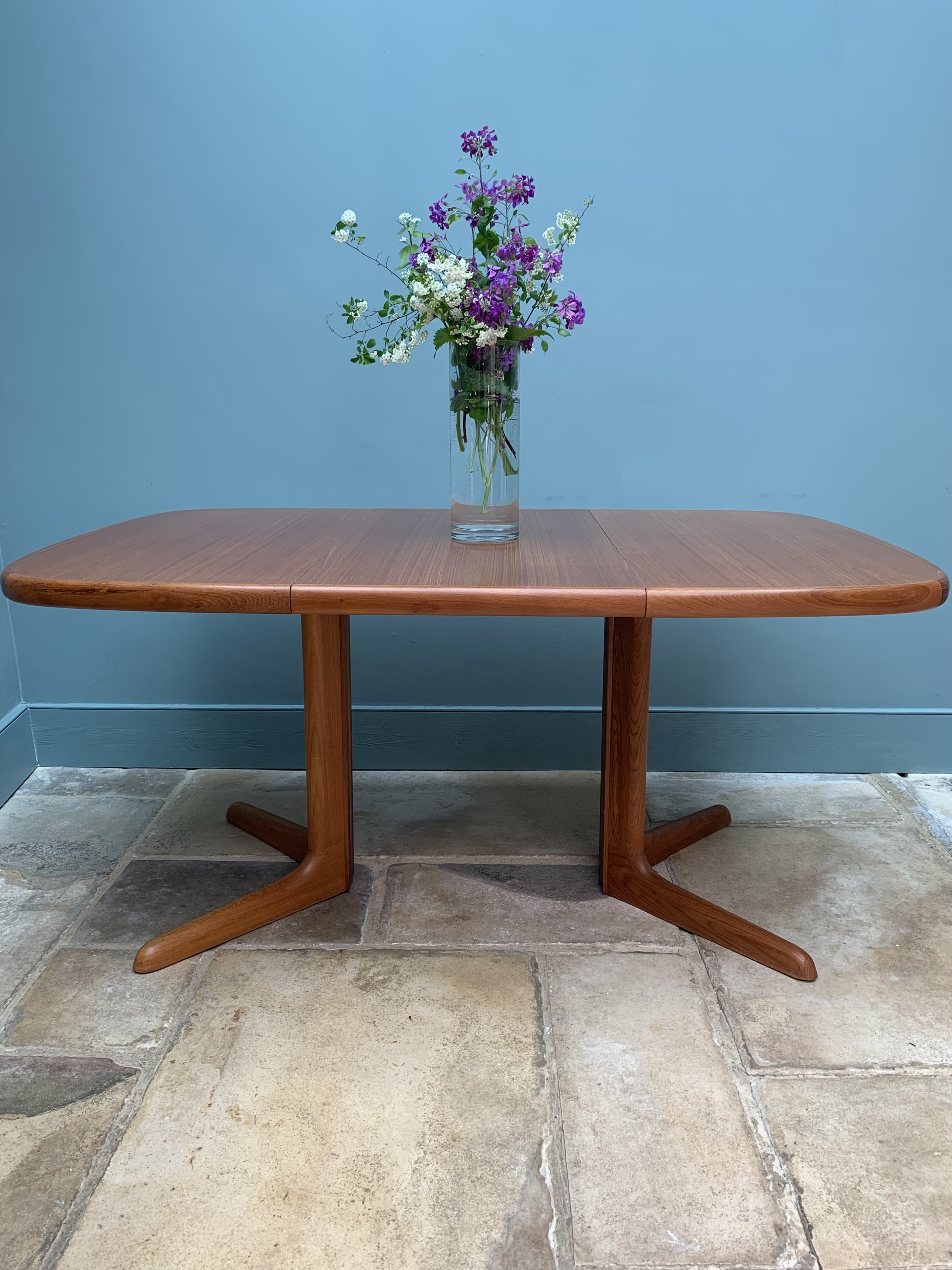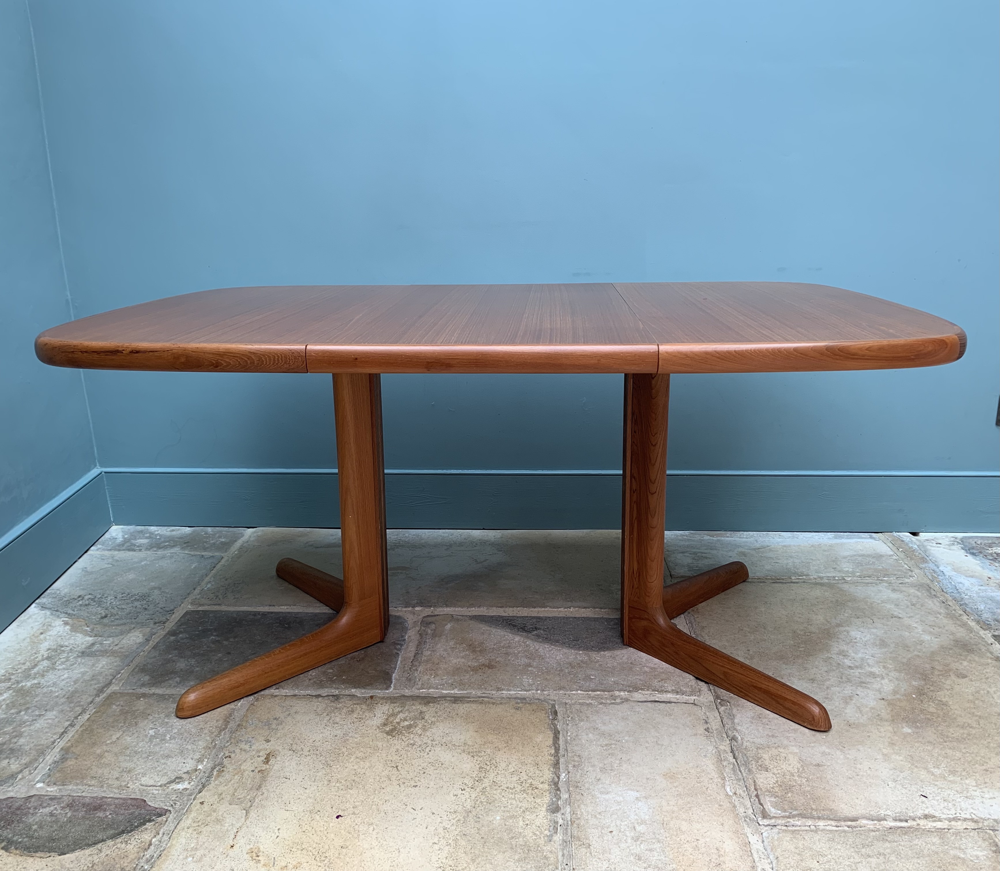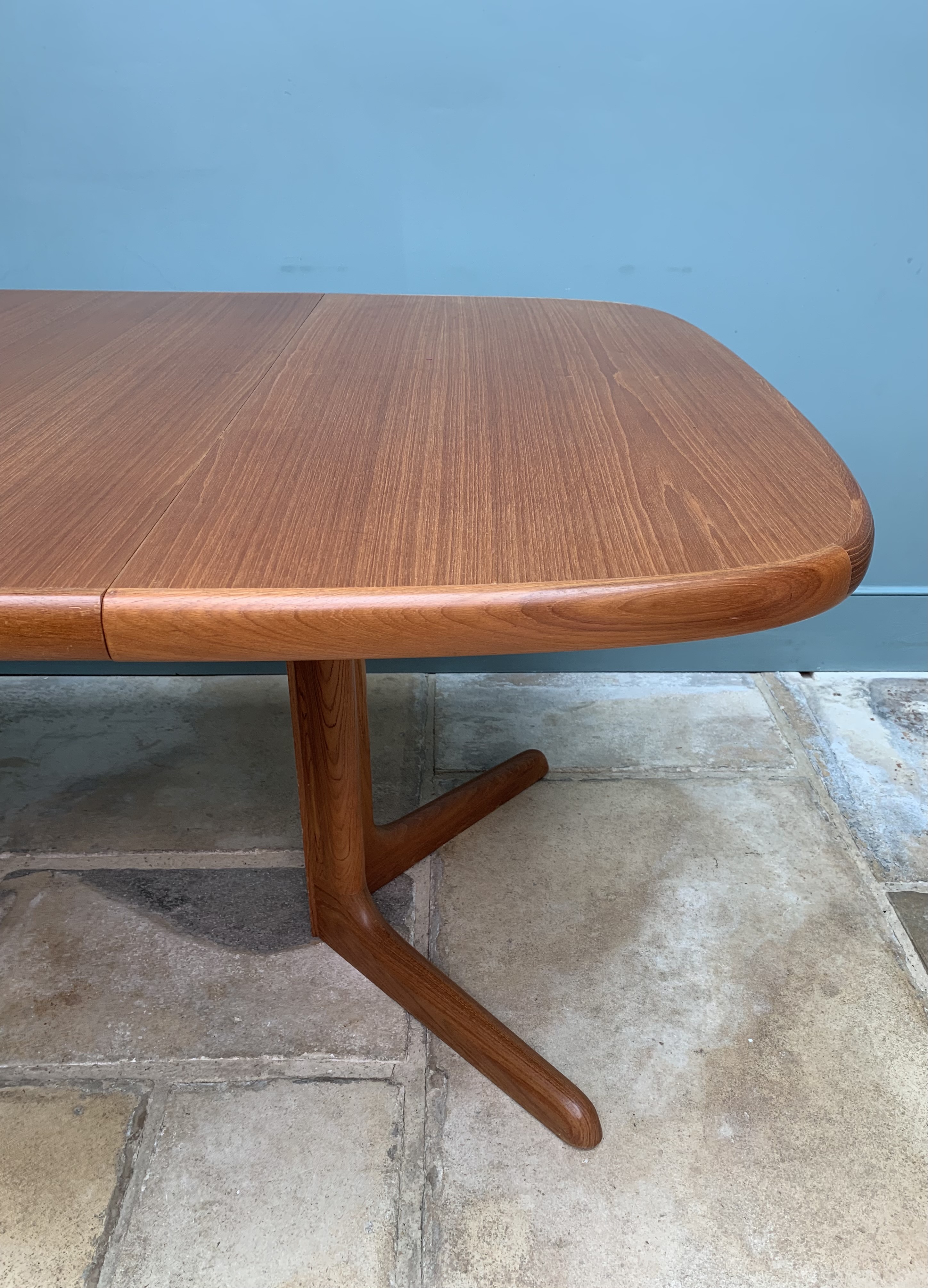 This handsome and unique shaped mid century dining table was designed and manufactured by Danish furniture makers Skovby during the 1960s. It has been beautifully crafted from teak wood and features the iconic and ever so stylish angled feet. This vintage dining table is ideal for the modern home, as when not extended it is a very compact square size seating up to 4 people (see pictures) and when extended with a centre additional leaf, is a generous size to seat 8 family and friends (dimensions listed below). The table is in superb condition for its age, with no damage and is structurally sound. We have kept the wood in its original condition and simply applied a layer of beeswax to enhance and protect it. It also features the Skovby makers mark on the underside. Price £1490