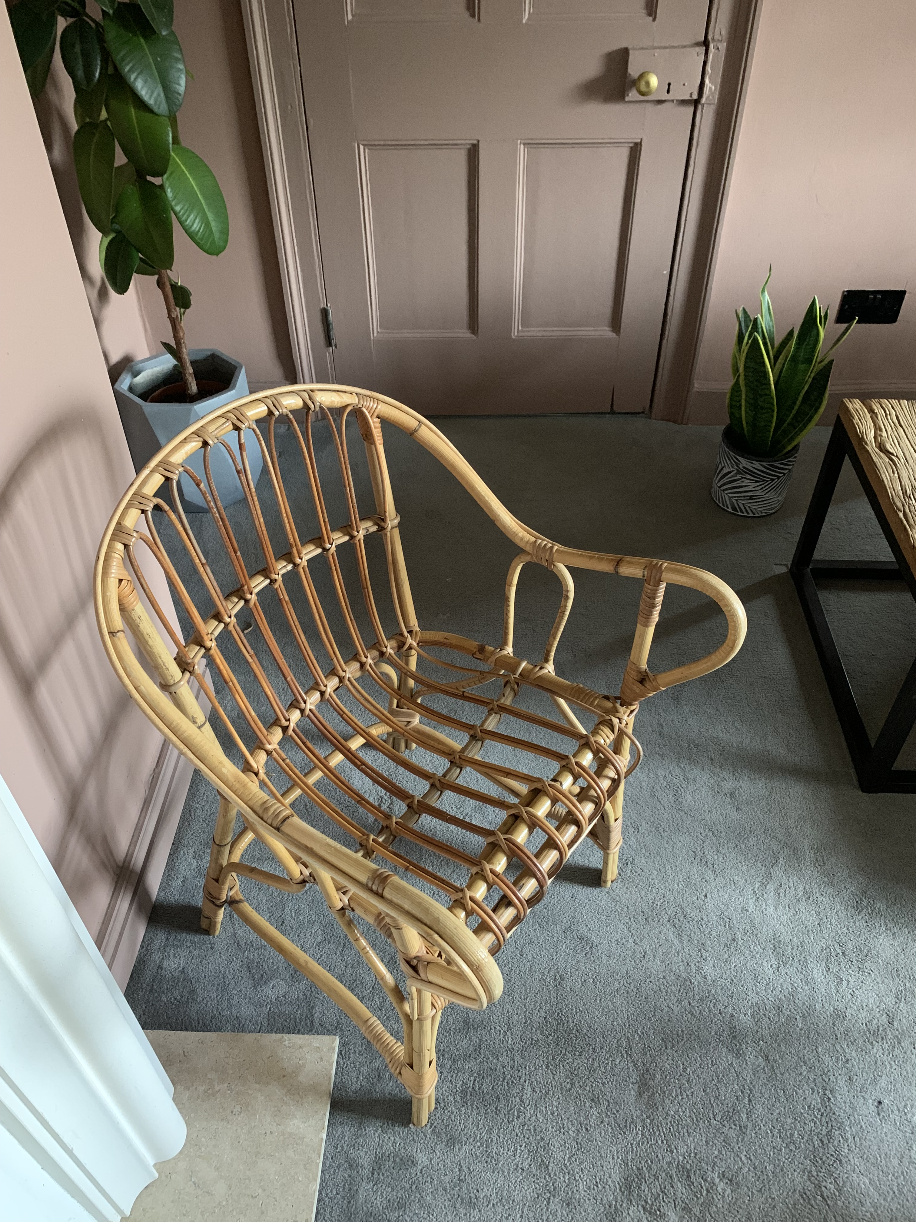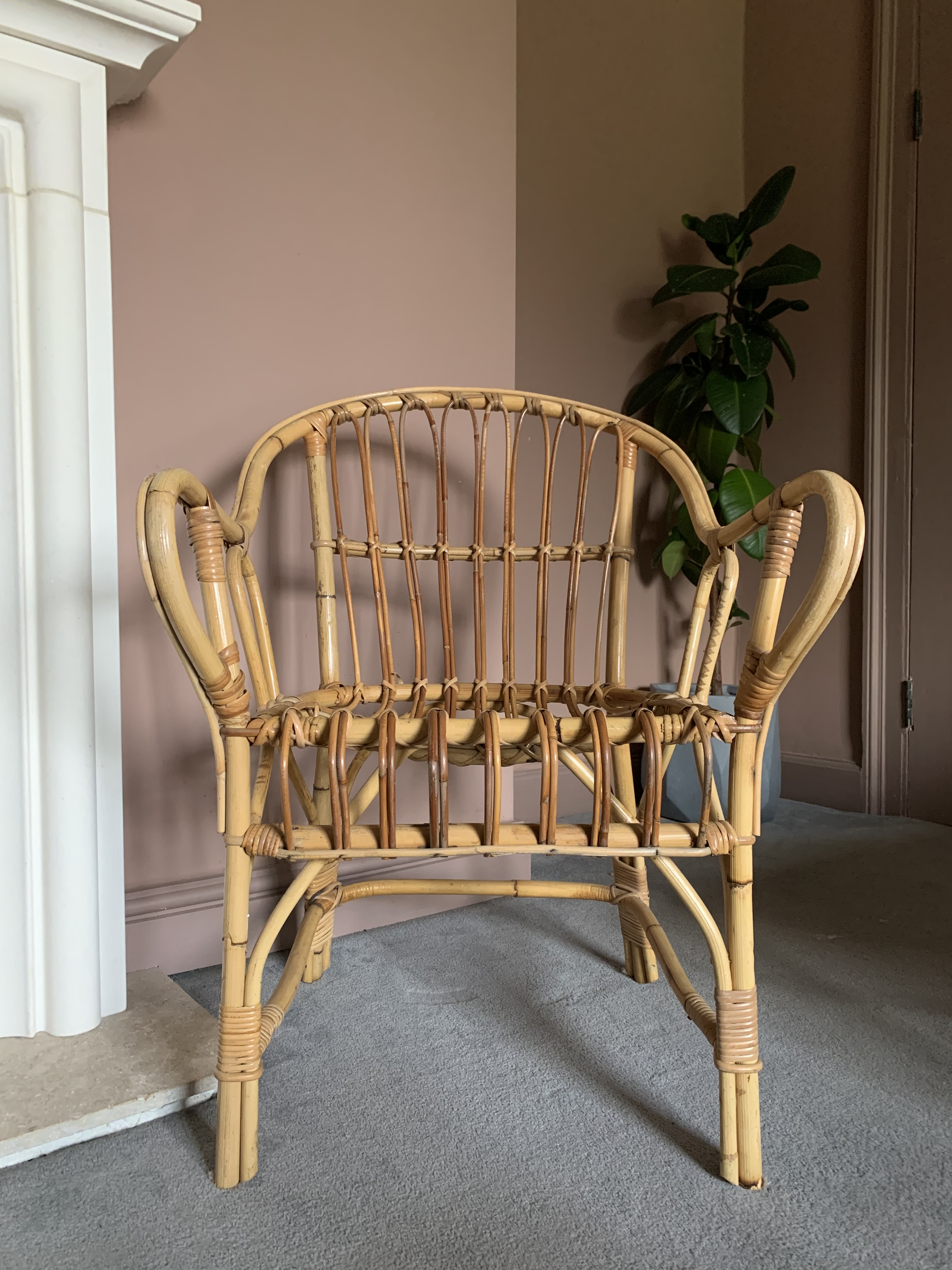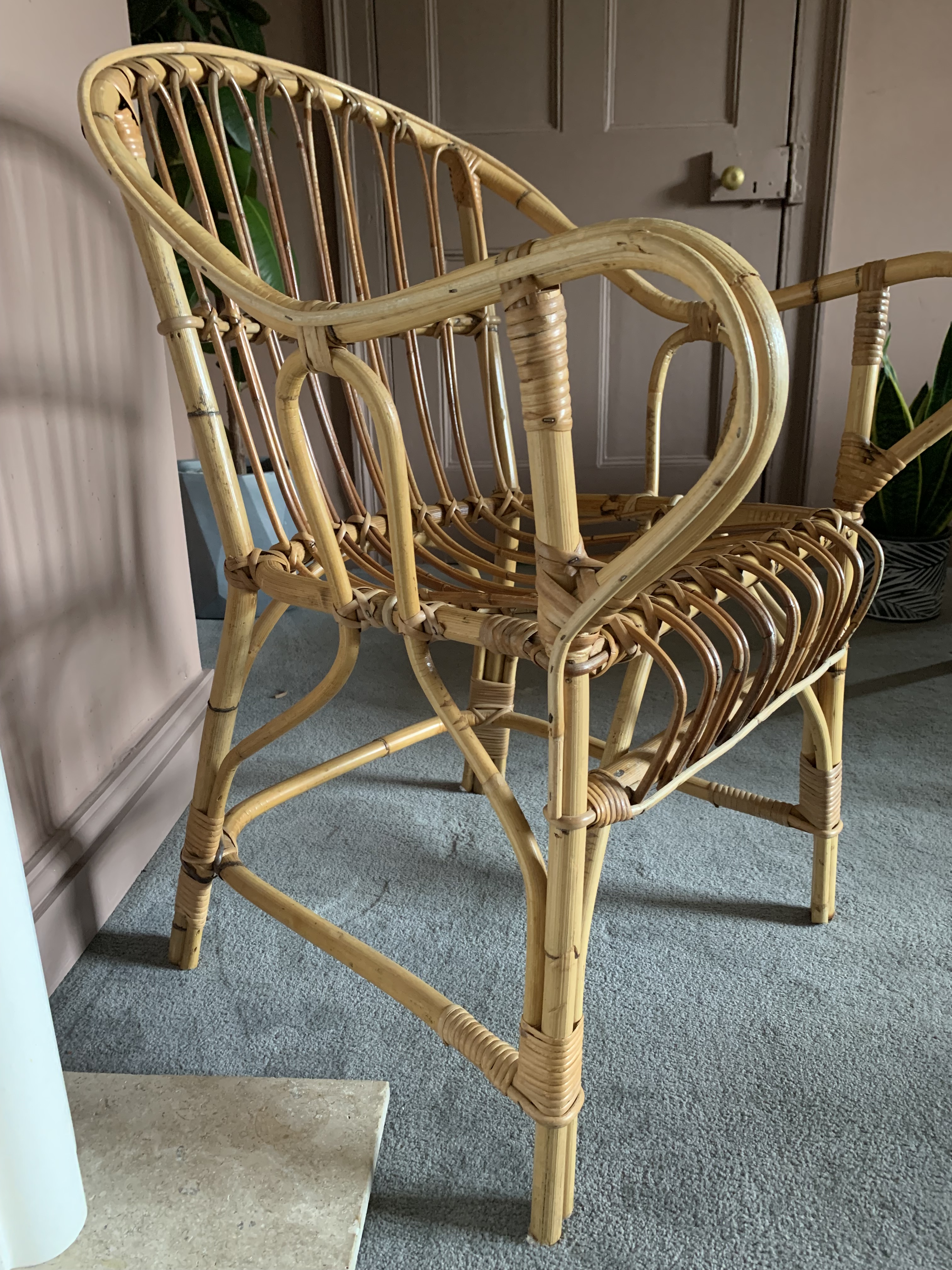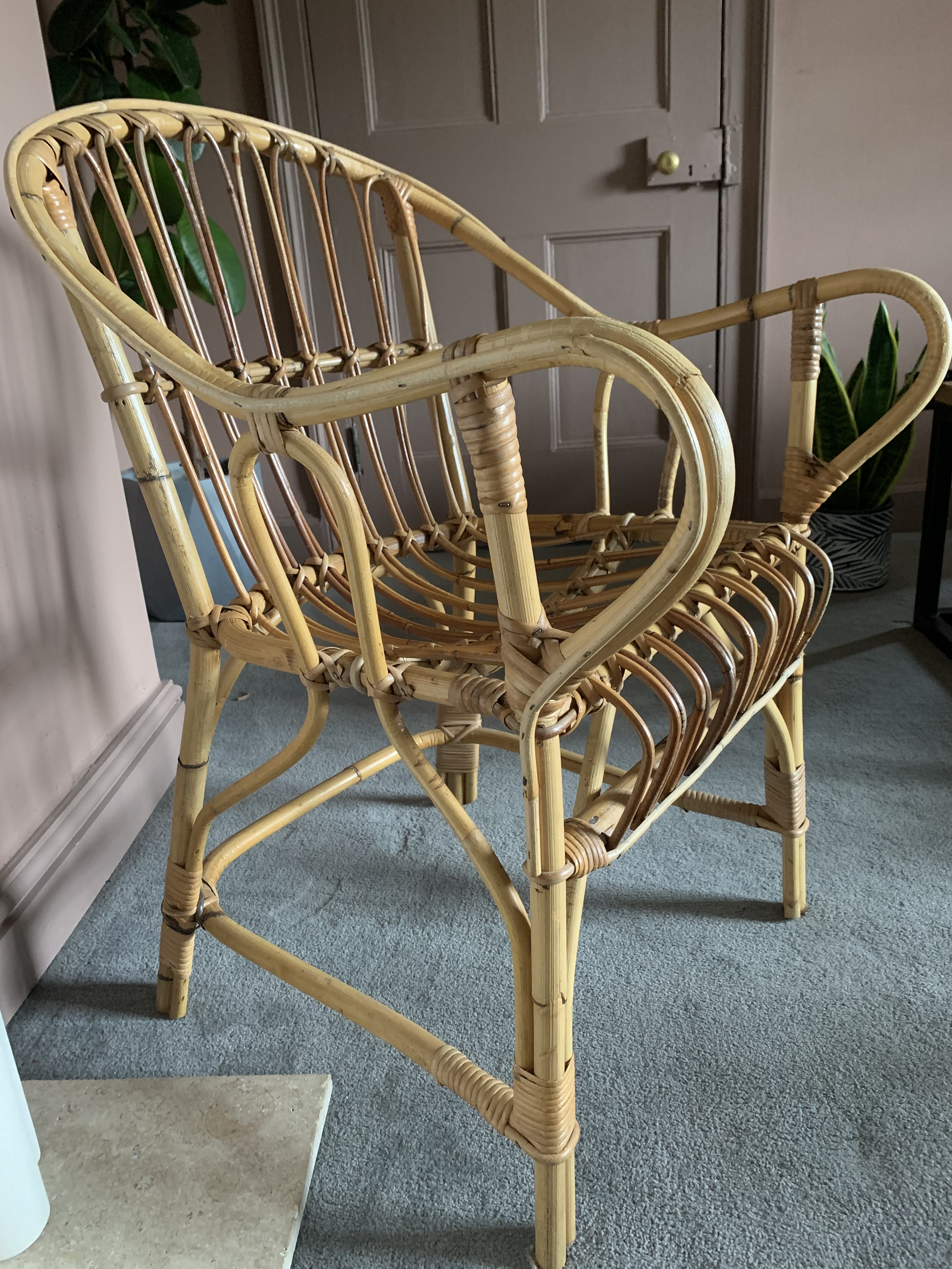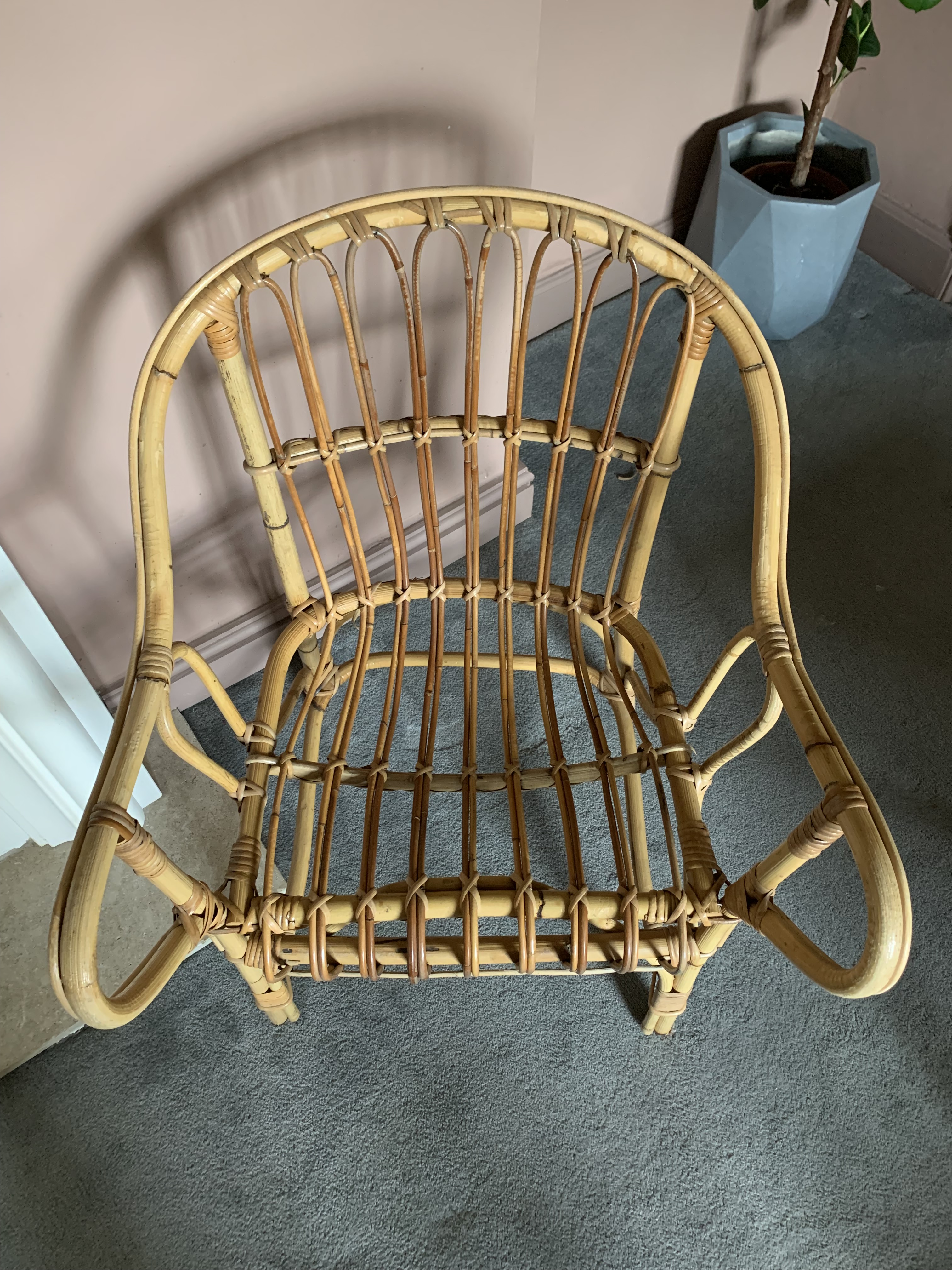 This gorgeous vintage cane bamboo chair is in very good condition – structurally sound and the cane in near perfect good condition, as per the pictures. Can be used with or without a cushion. (Cushion not included).