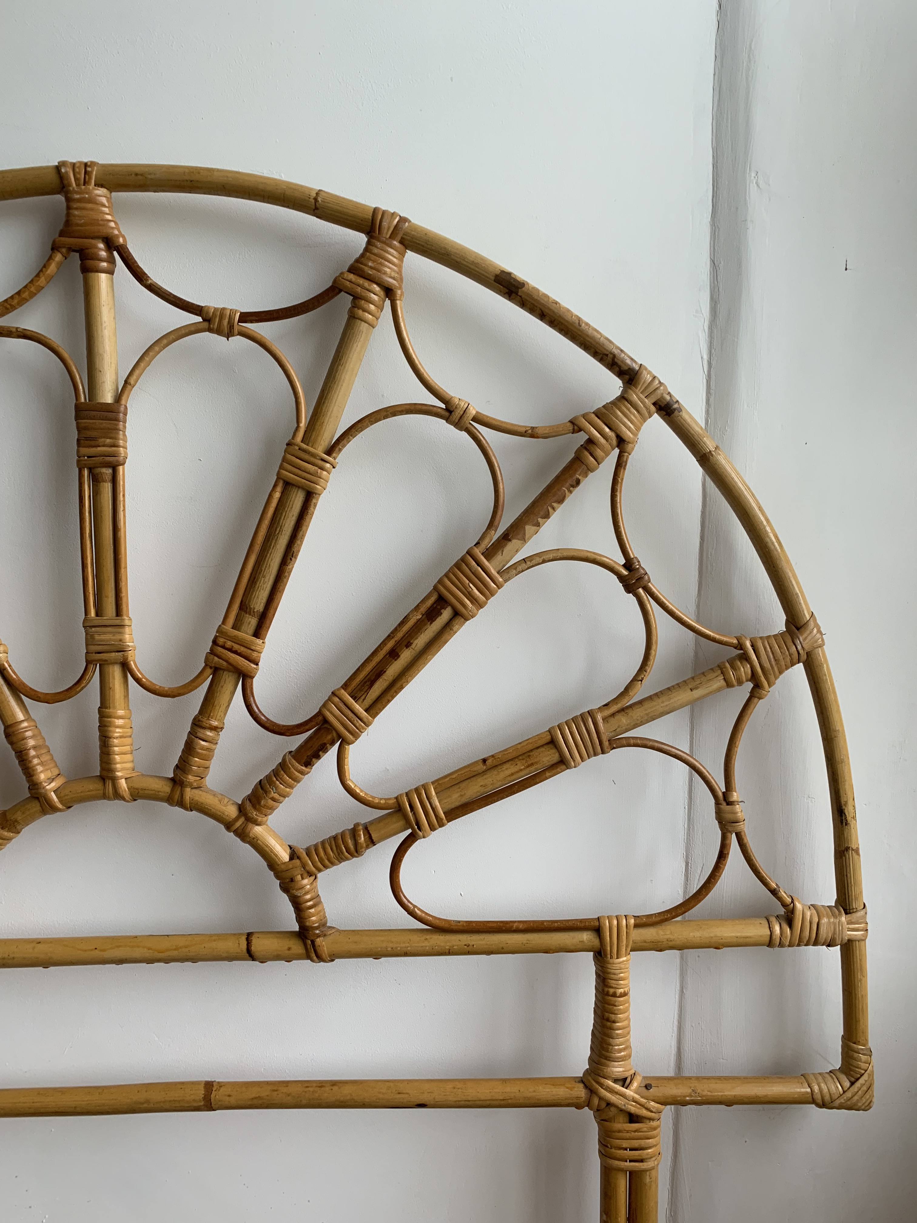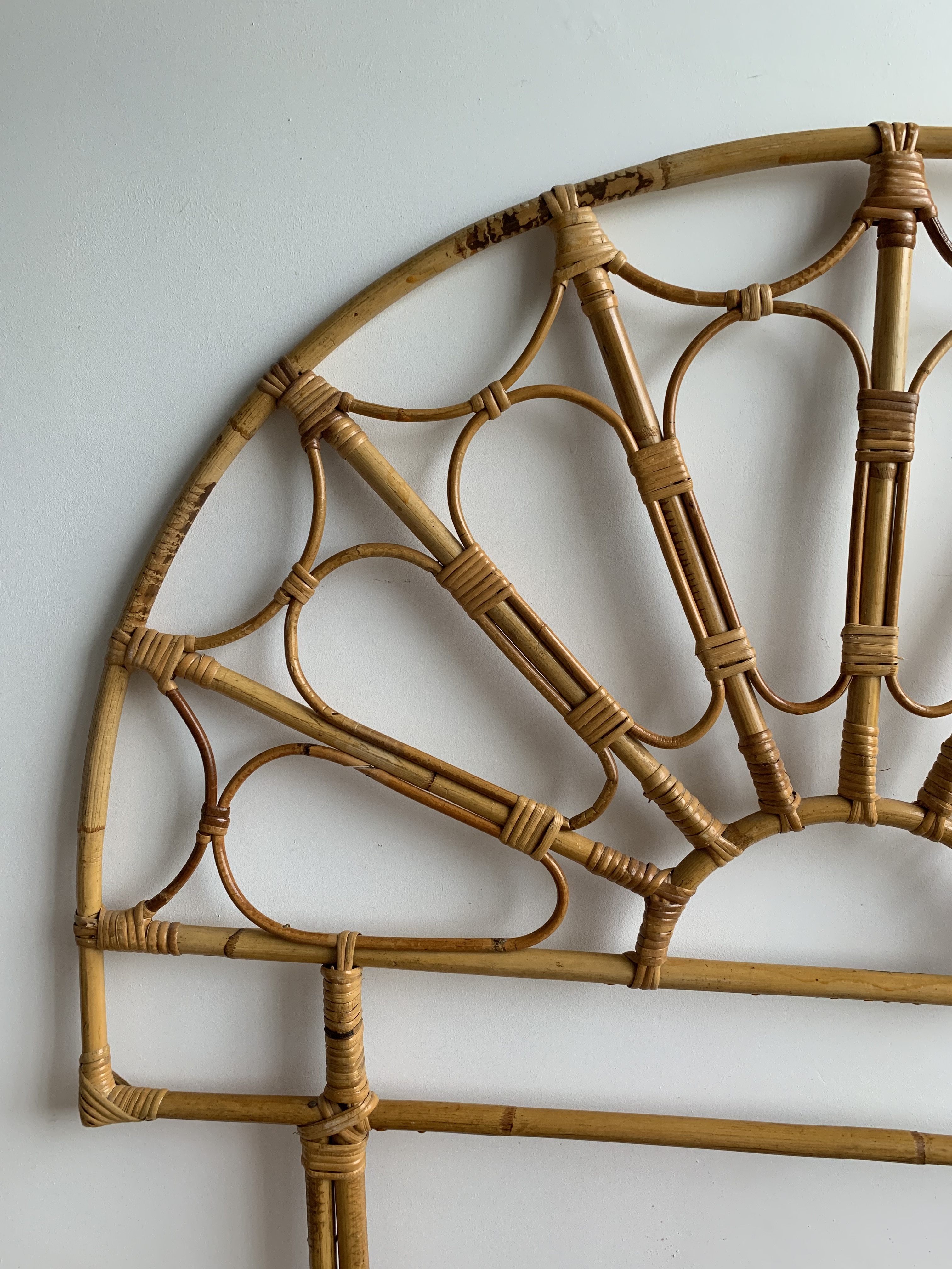 Gorgeous vintage cane bamboo headboard for a single bed, in good vintage condition (as you would expect for its age and use), with just one small part of the cane missing on the right hand side (see pics). This is such a great way to add a retro or bohemian finish to a bedroom and works well with all colour schemes.
