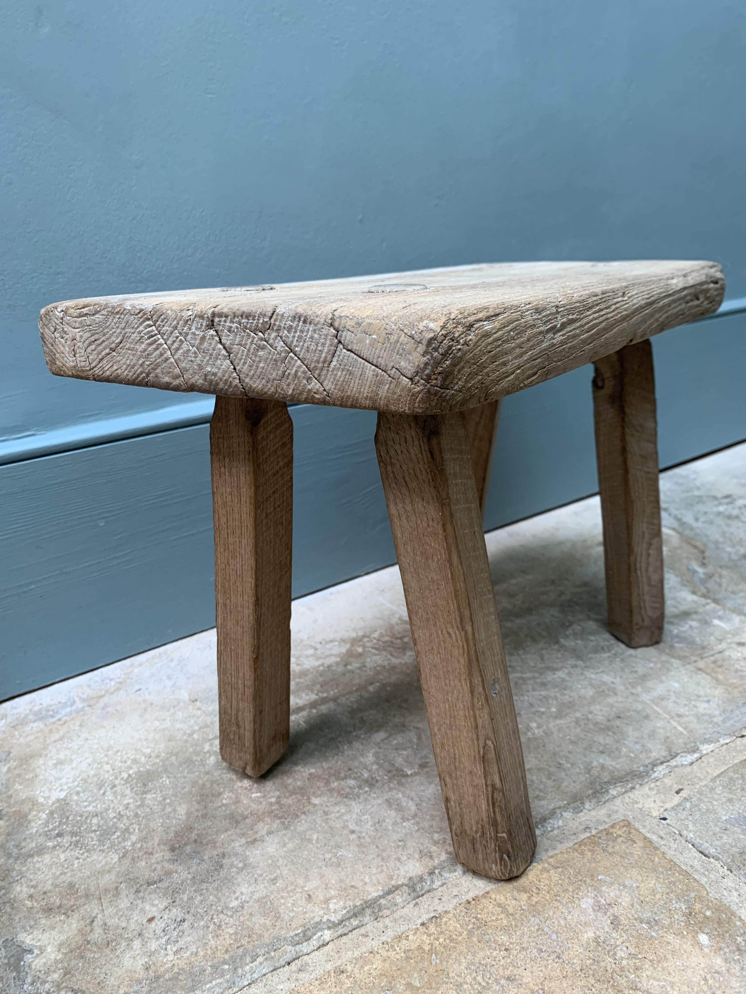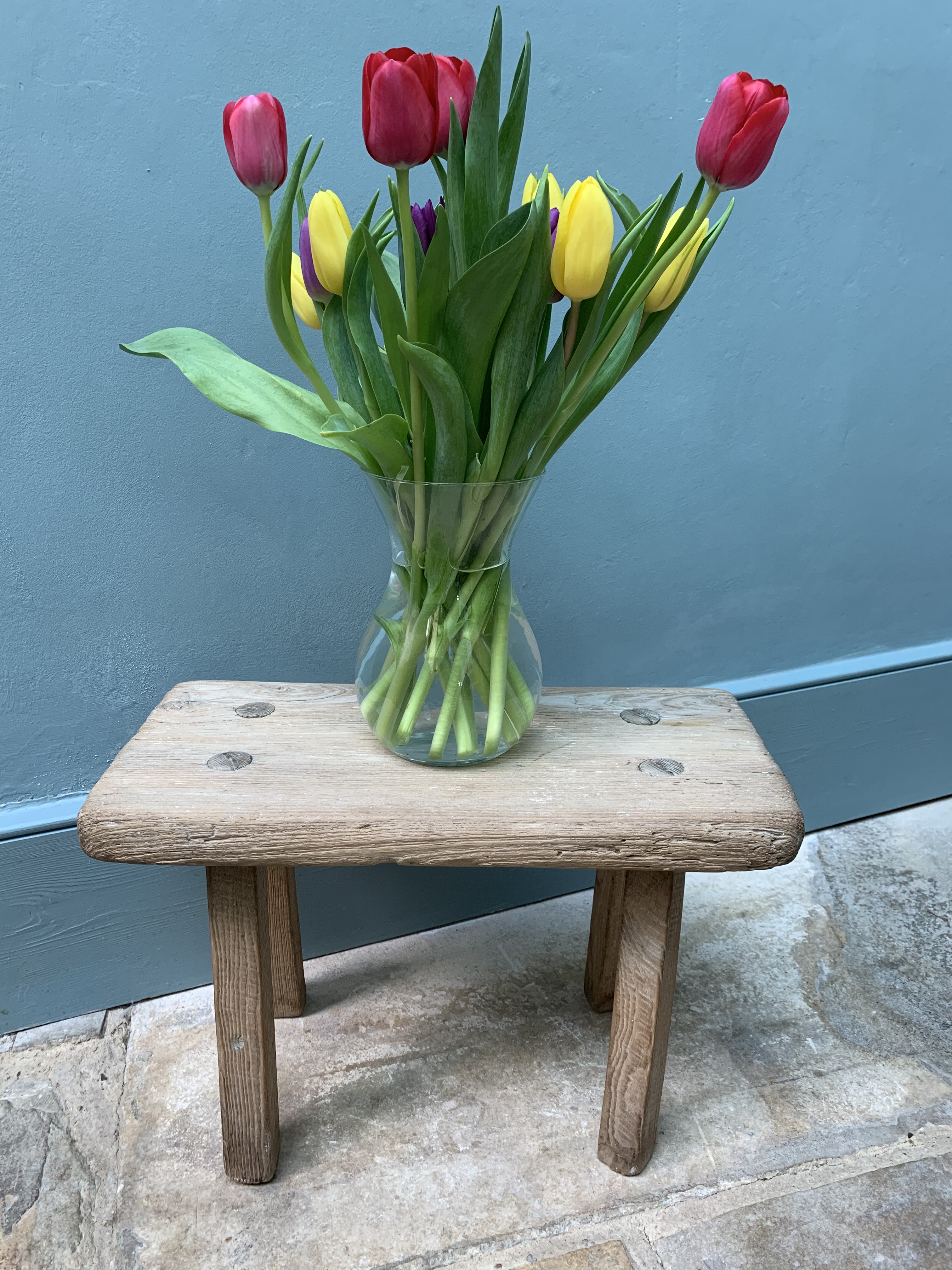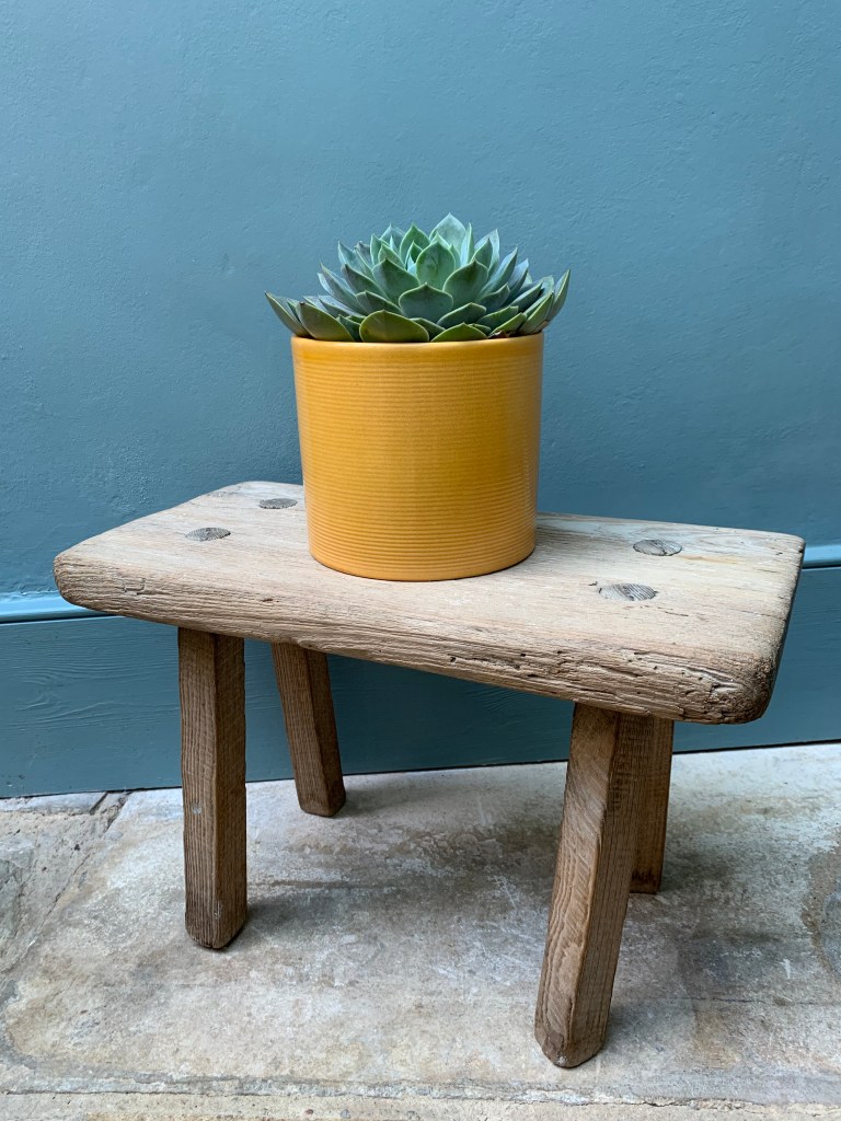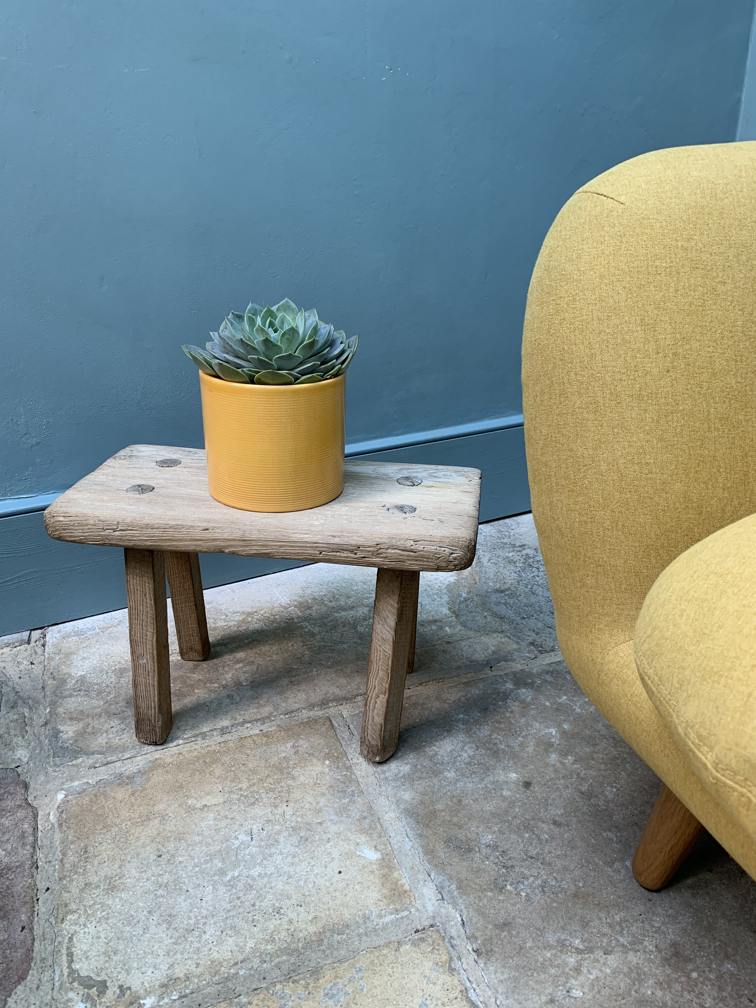 A gorgeous milking stool which has such character and vintage charm and is absolutely unique. We acquired this stool from a lady in Cirencester in the Cotswolds who bought it at a local antiques market. It likely started its life on a farm back in the early 20th century and now works effortlessly in the modern home as a plant stand, small table for bathroom guest towels or just a beautiful vintage piece for you home. It really is unique – its aged wood and wonky legs make it even more delightful. Price £85