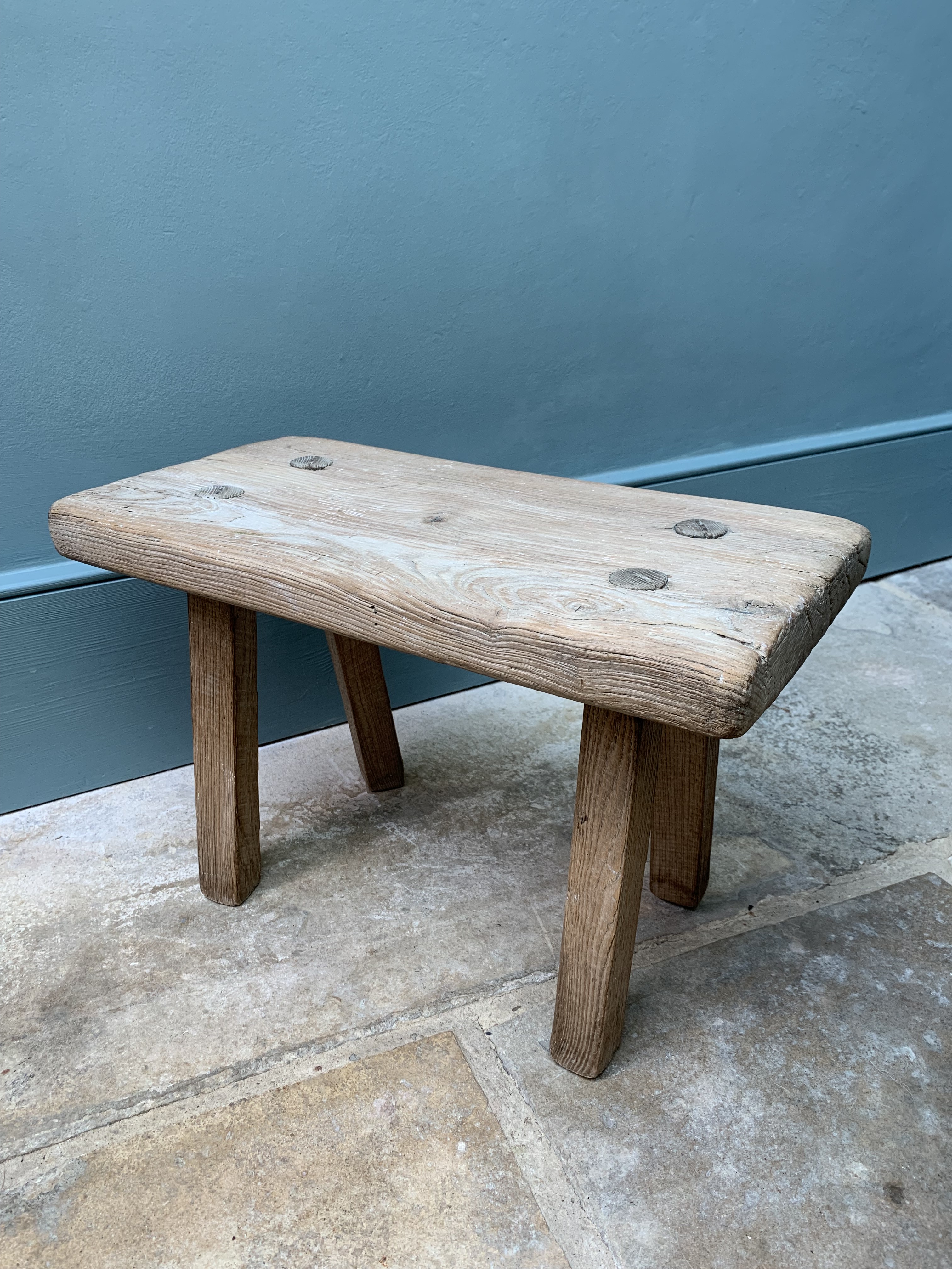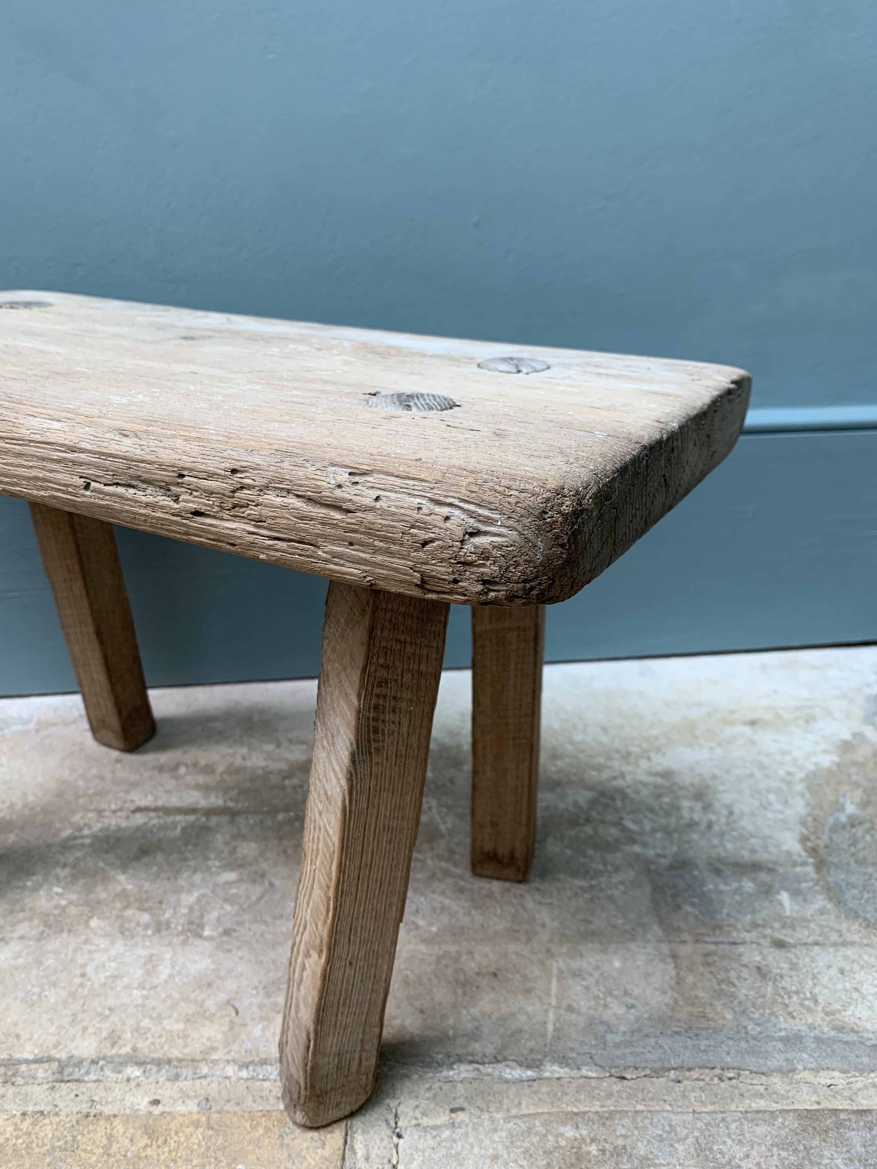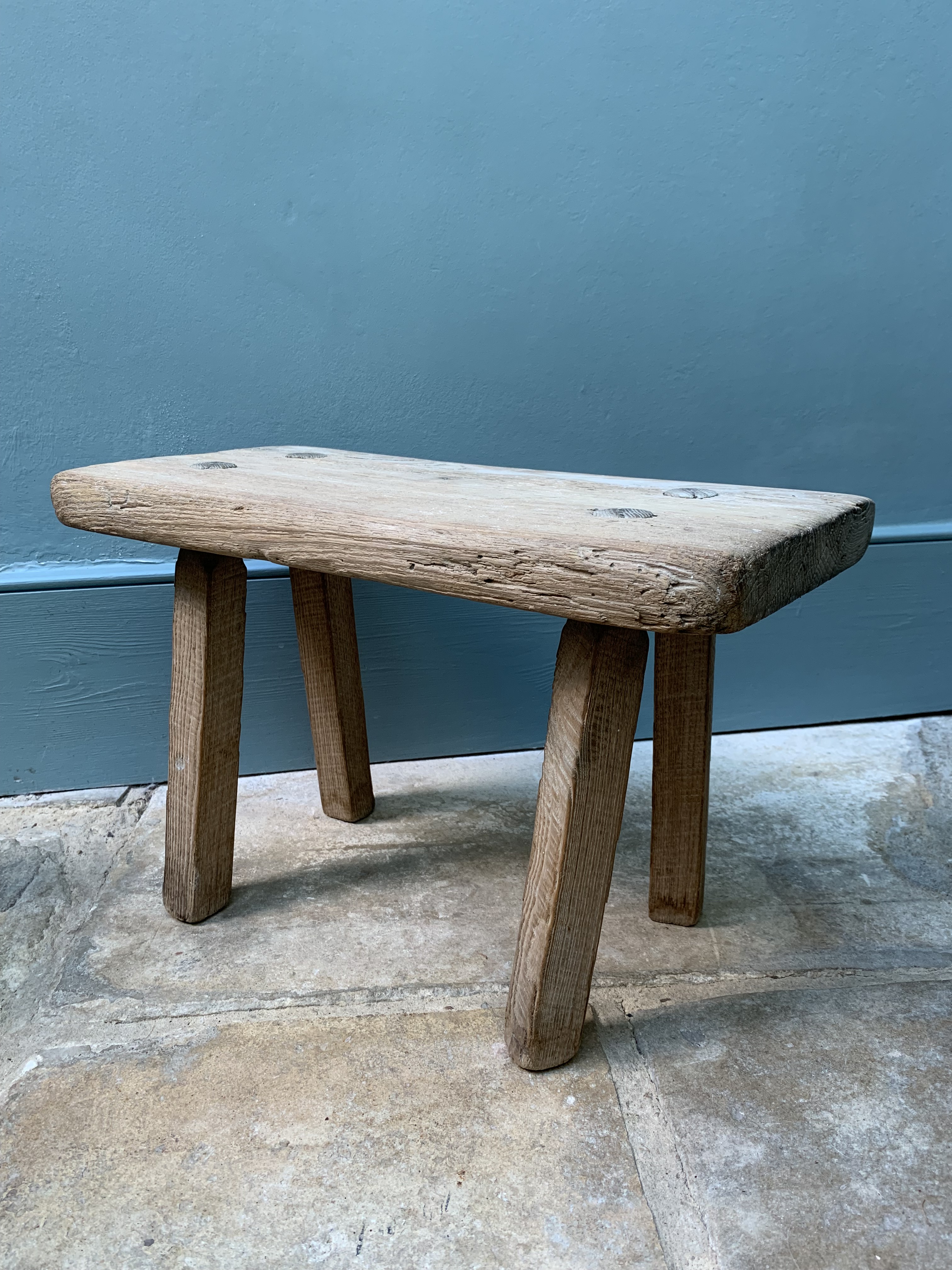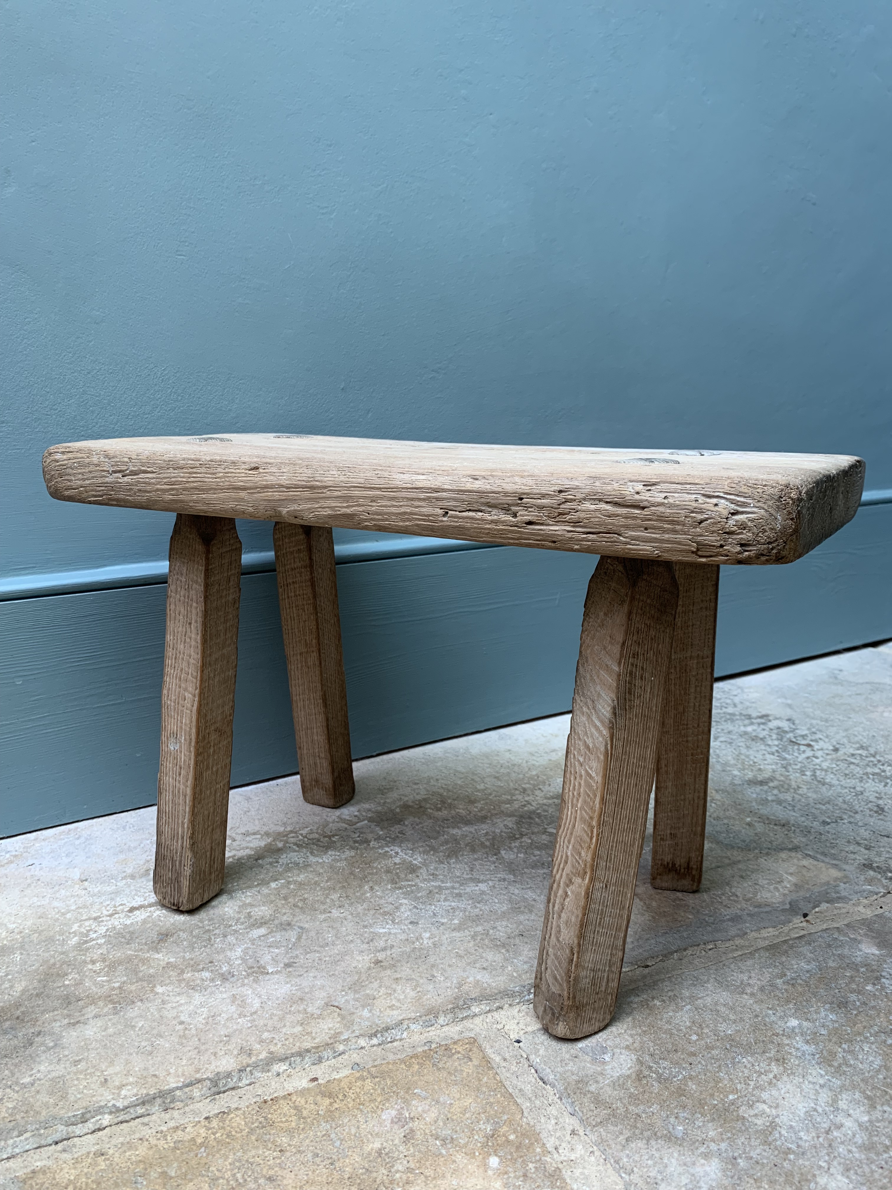 A gorgeous milking stool which has such character and vintage charm and is absolutely unique. We acquired this stool from a lady in Cirencester in the Cotswolds who bought it at a local antiques market. It likely started its life on a farm back in the early 20th century and now works effortlessly in the modern home as a plant stand, small table for bathroom guest towels or just a beautiful vintage piece for you home. It really is unique – its aged wood and wonky legs make it even more delightful. Price £85